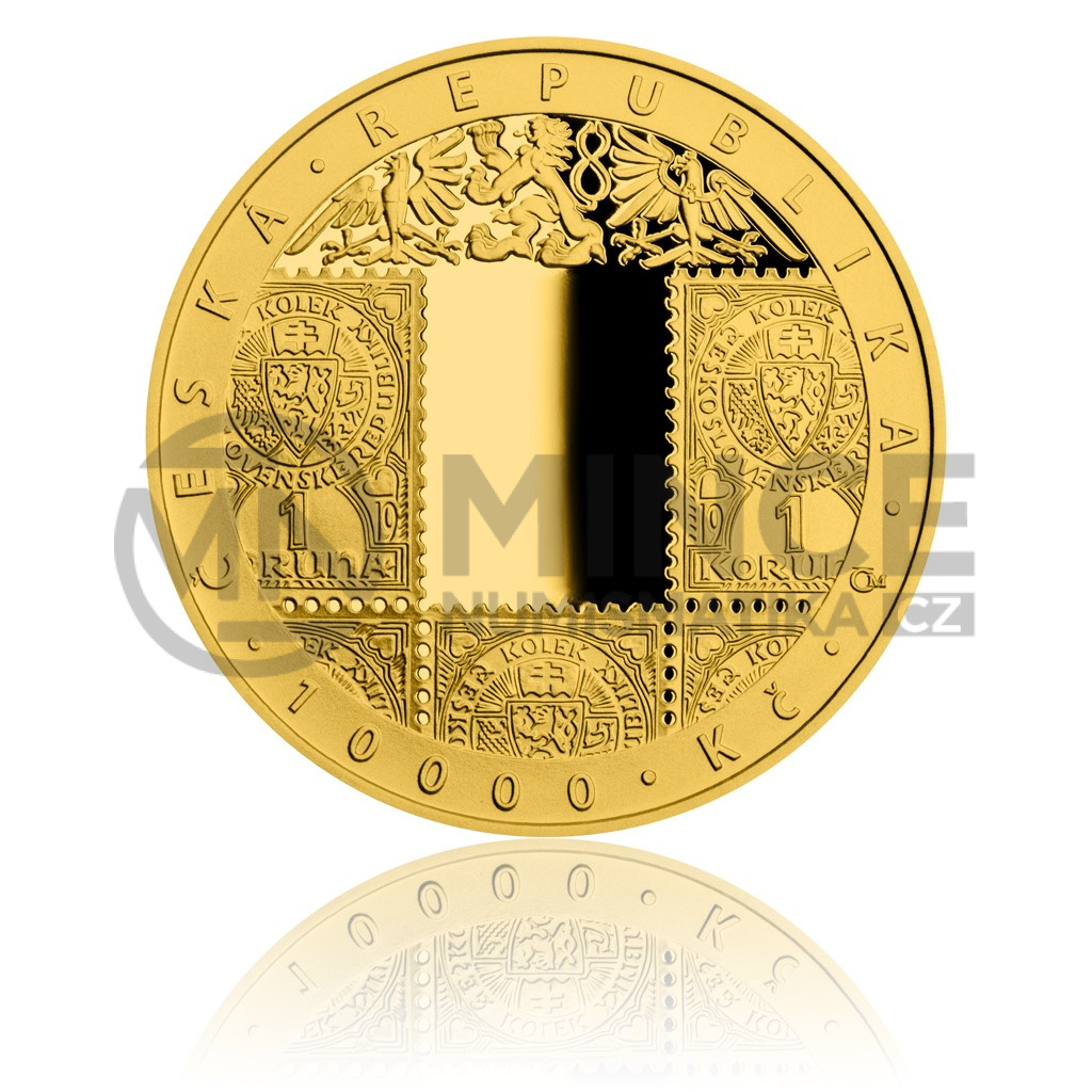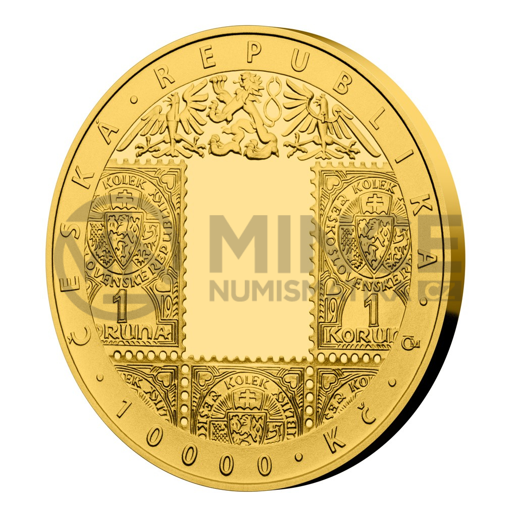 Na lícní straně mince je ztvárněn perforovaný arch kolků 1 K s vytrženým prostředním kolkem. V horní části mincovního pole jsou umístěna heraldická zvířata z velkého státního znaku. Po obvodu mince v mezikruží je v opisu název státu „ČESKÁ REPUBLIKA“, označení nominální hodnoty mince se zkratkou peněžní jednotky „10 000 Kč“ a značka České mincovny, která je tvořena kompozicí písmen „Č“ a „M“.