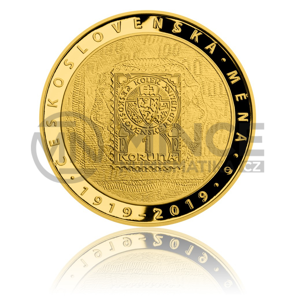 Rubové straně mince dominuje kolek v hodnotě 1 K, který je vytržen z archu zobrazeného na lícní straně a symbolicky položen na uherské straně bankovky Rakousko-uherské banky 100 K vzor 1912. Po obvodu mince je v opisu text „ČESKOSLOVENSKÁ MĚNA“ a letopočty „1919 - 2019“ umístěné v mezikruží. Za slovem „MĚNA“ jsou iniciály autora mince MgA. Josefa Oplištila, které jsou tvořeny kompozicí písmen „J“ a „O“.