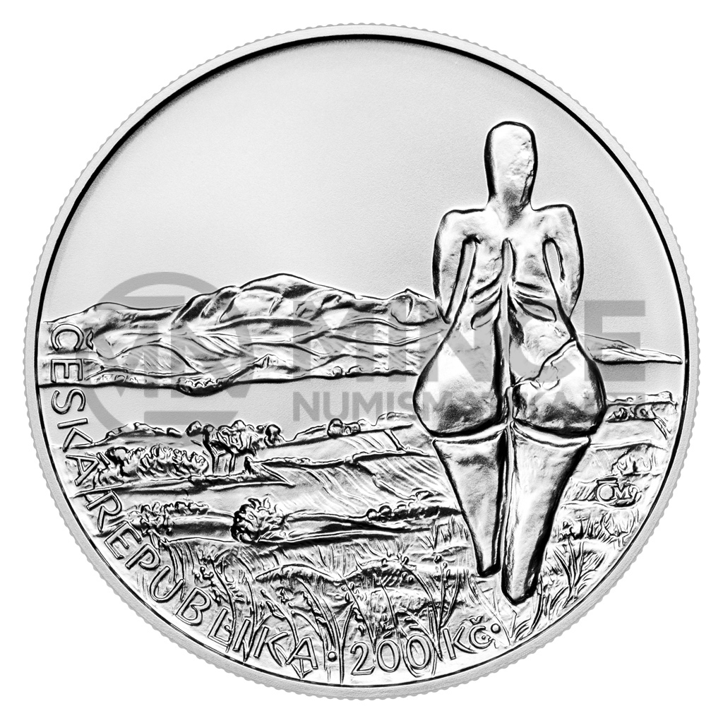 Na lícní straně dvousetkoruny je v pravé části mince postava Věstonické venuše zobrazená zezadu na pozadí krajiny Pavlovských vrchů. Při levém spodním okraji mince je text „ČESKÁ REPUBLIKA“ s označením nominální hodnoty a zkratkou peněžní jednotky „200 Kč“. Nominální hodnota je ohraničena tečkami. Značka České mincovny tvořená písmeny „Č“ a „M“ je vpravo od postavy Věstonické venuše.