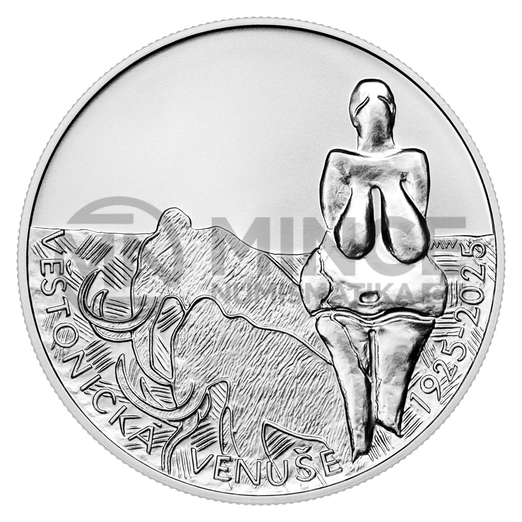 Na rubové straně dvousetkoruny je postava Věstonické venuše zobrazená zepředu na pozadí krajiny se 2 mamuty. Při levém spodním okraji mince je text „VĚSTONICKÁ VENUŠE“. Text „1925 - 2025“ je vpravo od postavy Věstonické venuše. Iniciály autorky mince akademické sochařky Majky Wichnerové, které jsou tvořeny kompozicí písmen „M“ a „W“, jsou nad textem „2025“.