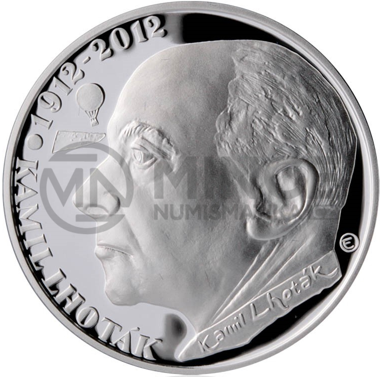 Motivem rubové strany mince je portrét Kamila Lhotáka, v jehož pozadí je zobrazen balon nad obzorem jako typický motiv z obrazů Kamila Lhotáka. Na límci portrétu je podpis Kamila Lhotáka. Při levém okraji dvousetkoruny je opis „KAMIL LHOTÁK“ a letopočty „1912 - 2012“. Autorkou dvousetkoruny je Tereza Eisnerová, její iniciály tvořené spojenými písmeny „TE“ v kruhu jsou při pravém okraji dvousetkoruny.