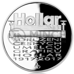 Na rubové straně dvousetkoruny je v horní části mince umístěno logo sdružení „Hollar“, pod kterým je zobrazen válec tiskařského lisu. Ve spodní polovině mince je v šesti řádcích text „SDRUŽENÍ ČESKÝCH UMĚLCŮ GRAFIKŮ HOLLAR“ a letopočty „1917 – 2017“. Při spodním okraji dvousetkoruny se nacházejí iniciály autora mince MgA. Martina Daška, které jsou tvořeny spojenými písmeny „M“ a „D“.