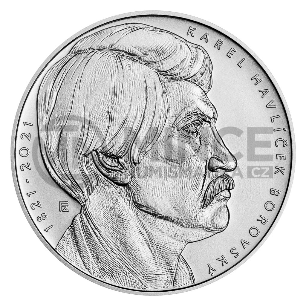 Na lícní straně dvousetkoruny jsou ztvárněny fragmenty titulních listů novin Karla Havlíčka Borovského a název jednoho z jeho literárních děl. Při horním okraji mince je v opisu text "ČESKÁ REPUBLIKA" a při levém okraji mince se nachází označení nominální hodnoty se zkratkou peněžní jednotky "200 Kč". Značka České mincovny tvořená písmeny "Č" a "M" je umístěna při pravém spodním okraji mince.
