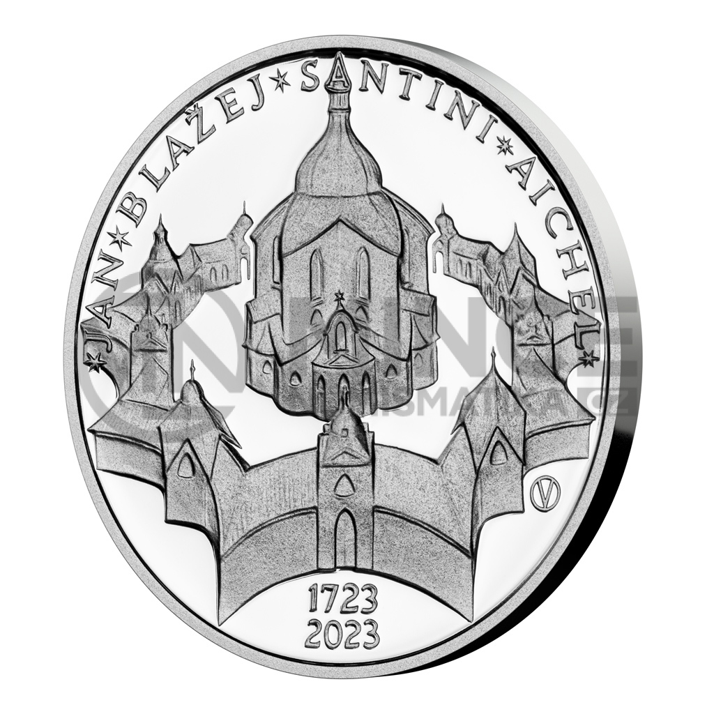 Na rubové straně dvousetkoruny je zobrazen kostel sv. Jana Nepomuckého na Zelené hoře. V opisu při horním okraji mince je text „JAN BLAŽEJ SANTINI AICHEL“. Jednotlivá slova tohoto textu jsou ohraničena hvězdičkami. Při spodním okraji mince jsou texty „1723“ a „2023“. Iniciály autora mince akademického sochaře Vladimíra Oppla, které jsou tvořeny kompozicí písmen „V“ a „O“, jsou při pravém okraji mince.