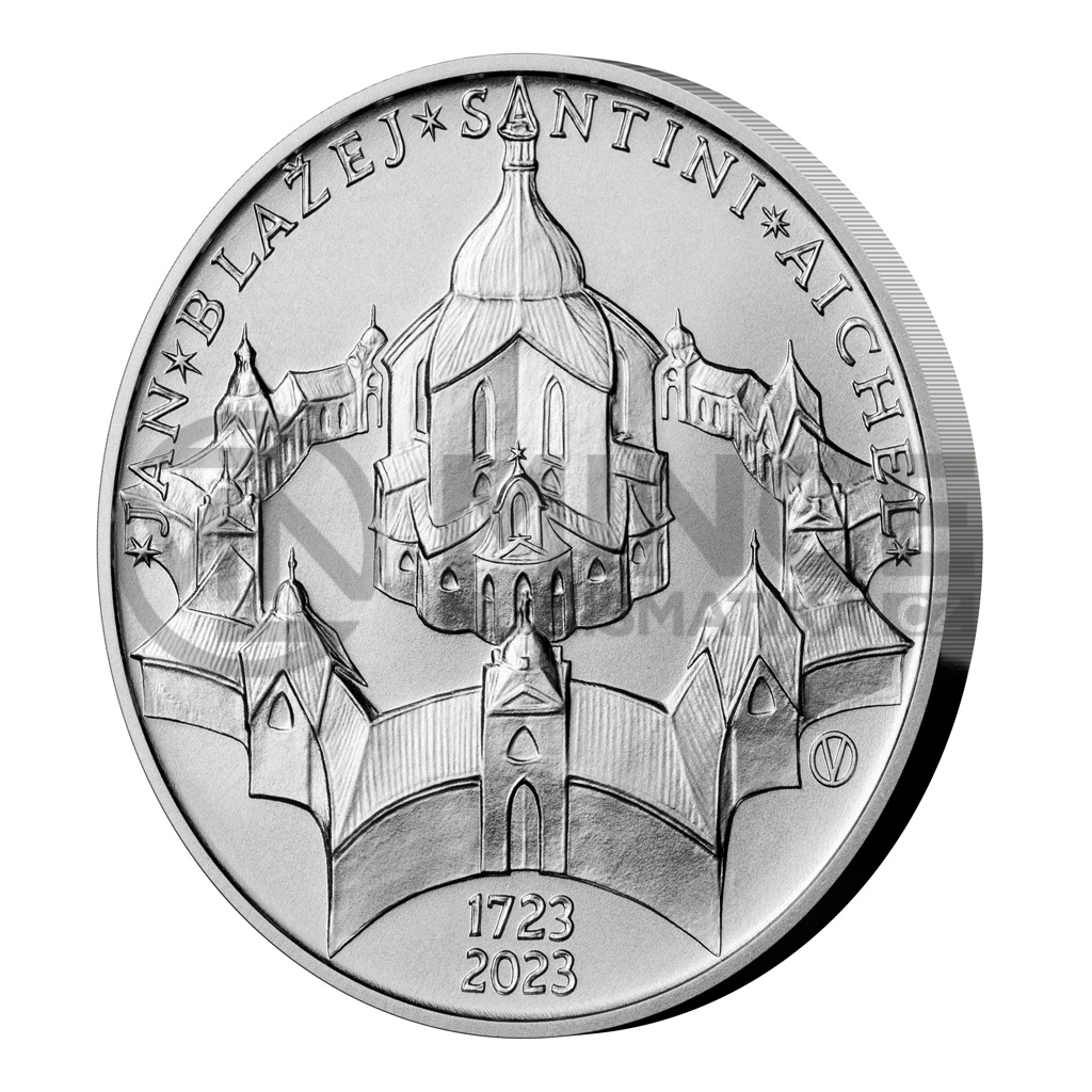 Na rubové straně dvousetkoruny je zobrazen kostel sv. Jana Nepomuckého na Zelené hoře. V opisu při horním okraji mince je text „JAN BLAŽEJ SANTINI AICHEL“. Jednotlivá slova tohoto textu jsou ohraničena hvězdičkami. Při spodním okraji mince jsou texty „1723“ a „2023“. Iniciály autora mince akademického sochaře Vladimíra Oppla, které jsou tvořeny kompozicí písmen „V“ a „O“, jsou při pravém okraji mince.