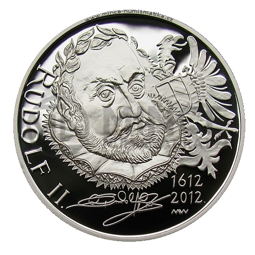 Na rubu dvousetkoruny je portrét Rudolfa II. podle dobové rytiny od Aegidia Sadelera. Vpravo od portrétu Rudolfa II. je habsburský orel, částečně zakrytý portrétem, a pod portrétem je podpis císaře. Vpravo od podpisu císaře jsou letopočty „1612 – 2012“. Při levém okraji dvousetkoruny je opis „RUDOLF II.“. Autorkou dvousetkoruny je akademická sochařka Majka Wichnerová, její iniciály tvořené písmeny „MW“ jsou při spodním pravém okraji dvousetkoruny.