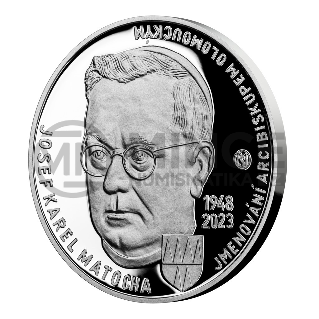 Na rubové straně dvousetkoruny je ztvárněn portrét Josefa Karla Matochy. Při pravém spodním okraji mince je umístěna zjednodušená varianta znaku Arcibiskupství olomouckého a vpravo nad ní texty „1948“ a „2023“. Texty „JOSEF KAREL MATOCHA“ a „JMENOVÁNÍ ARCIBISKUPEM OLOMOUCKÝM“ se nachází v neúplném opisu po obvodu mince. Iniciály autorky mince Mgr. Marie Šeborové, které jsou tvořeny kompozicí písmen „M“ a „Š“, jsou umístěny nad textem „1948“.