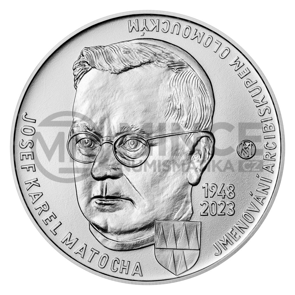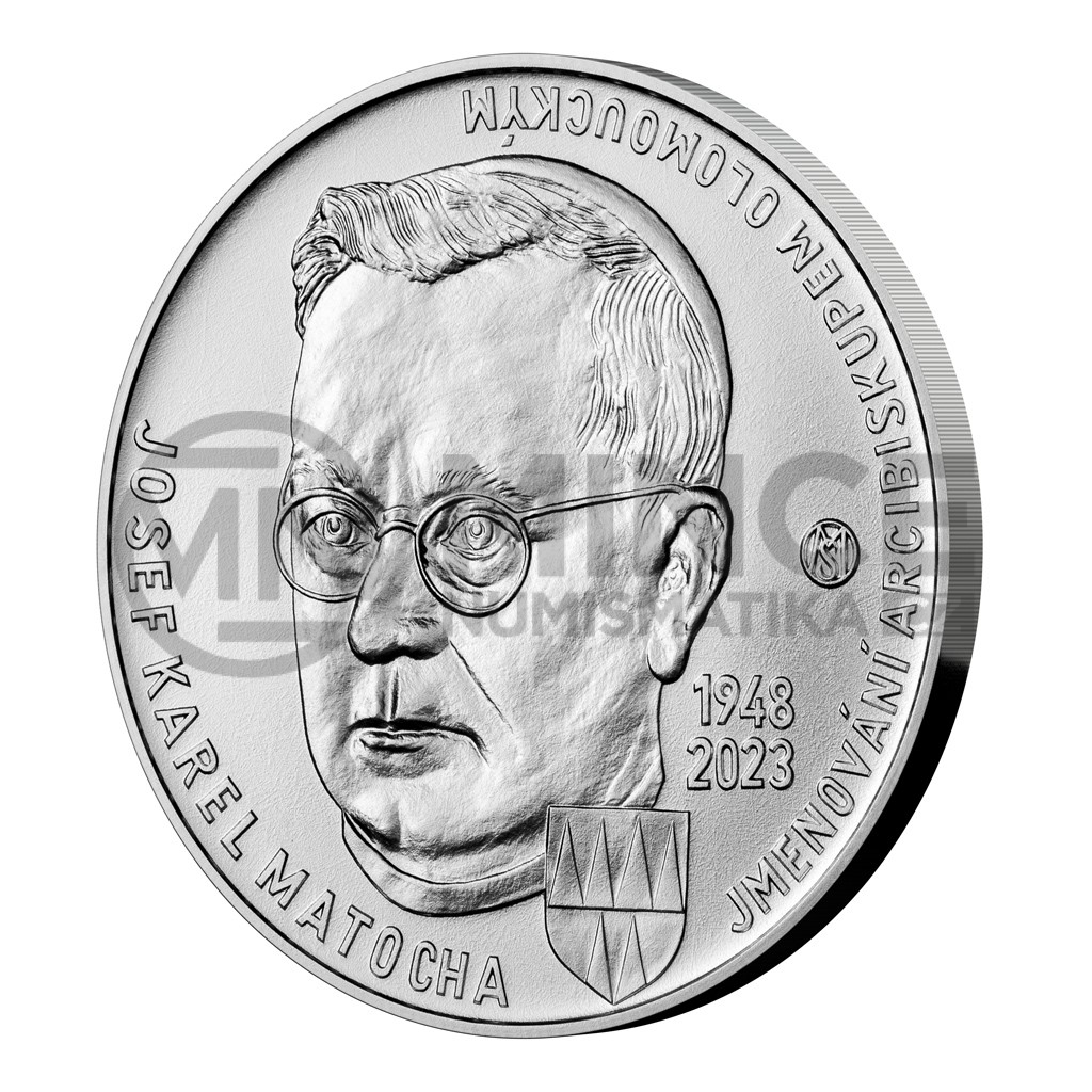 Na rubové straně dvousetkoruny je ztvárněn portrét Josefa Karla Matochy. Při pravém spodním okraji mince je umístěna zjednodušená varianta znaku Arcibiskupství olomouckého a vpravo nad ní texty „1948“ a „2023“. Texty „JOSEF KAREL MATOCHA“ a „JMENOVÁNÍ ARCIBISKUPEM OLOMOUCKÝM“ se nachází v neúplném opisu po obvodu mince. Iniciály autorky mince Mgr. Marie Šeborové, které jsou tvořeny kompozicí písmen „M“ a „Š“, jsou umístěny nad textem „1948“.