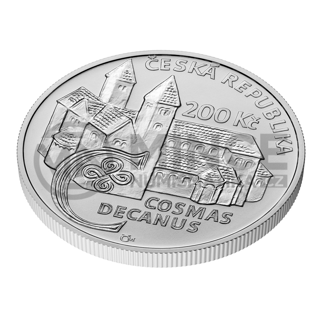 Na lícní straně dvousetkoruny je ztvárněna románská bazilika sv. Víta, Vojtěcha a Panny Marie. V dolní části mince je vlevo iniciála „C“ doplněná motivem z románského sloupu a vpravo od ní text „COSMAS DECANUS“. Při horním okraji mince je text „ČESKÁ REPUBLIKA“. Označení nominální hodnoty se zkratkou peněžní jednotky „200 Kč“ je nad bazilikou. Značka České mincovny tvořená písmeny „Č“ a „M“ je při dolním okraji mince.