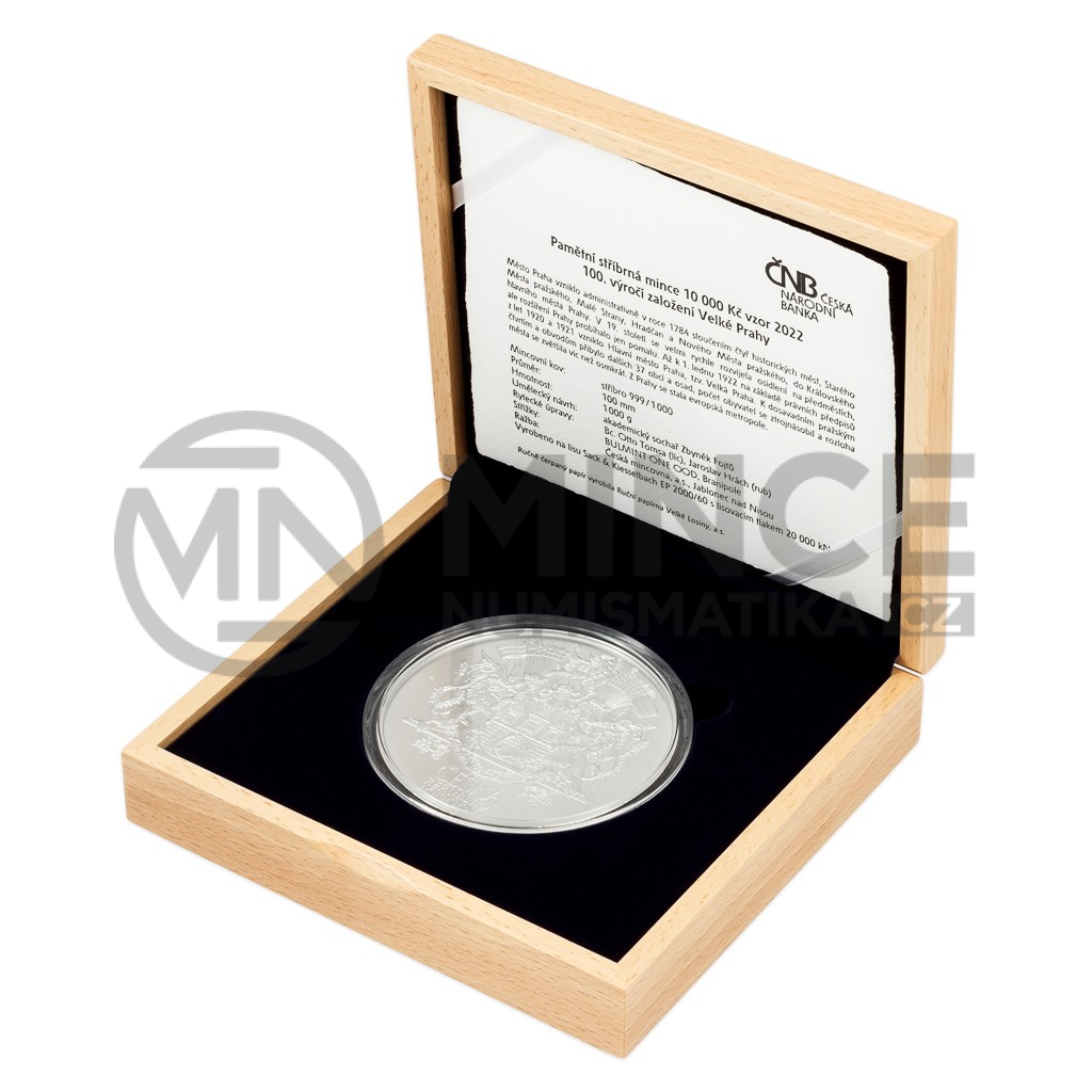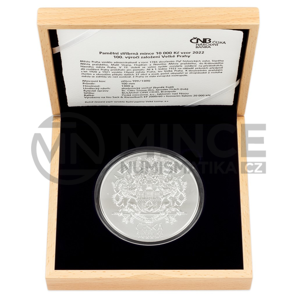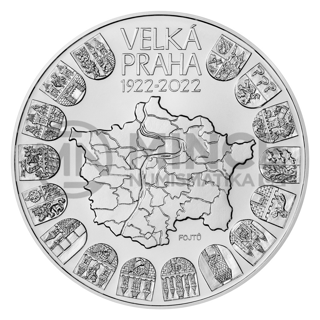 Na rubové straně mince je vyobrazena mapa Velké Prahy s vyznačením území všech původně samostatných historických obcí a měst, které v letech 1922-1968 tvořily Velkou Prahu. Po obvodu mince jsou v pořadí zprava nahoře vyobrazeny štíty ze znaků těchto obcí a měst: Vršovice, Košíře, Smíchov, Břevnov, Bubeneč, Vyšehrad, Hradčany, Malá Strana, Staré Město pražské, Nové Město pražské, Libeň, Vysočany, Karlín, Žižkov, Královské Vinohrady a Nusle. V horní části mincovního pole jsou umístěny ve třech řádcích texty „VELKÁ“, „PRAHA“ a „1922-2022“. Příjmení autora mince akademického sochaře Zbyňka Fojtů je umístěno pod mapou Velké Prahy.