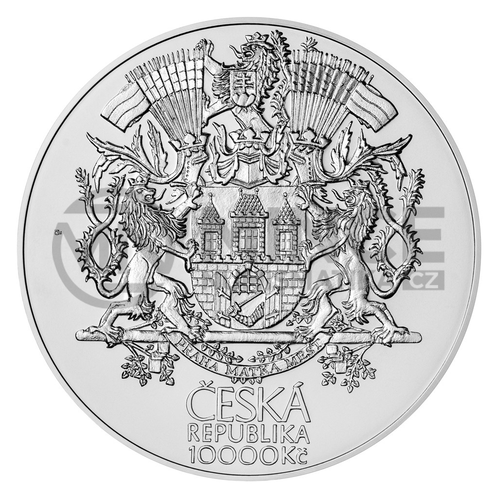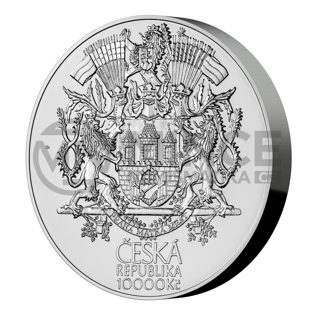 Na lícní straně mince je ztvárněn historický znak hlavního města Prahy. Ve spodní části mincovního pole jsou umístěny ve třech řádcích texty „ČESKÁ“, „REPUBLIKA“ a označení nominální hodnoty mince se zkratkou peněžní jednotky „10 000 Kč“. Značka České mincovny, která je tvořena kompozicí písmen „Č“ a „M“, se nachází při levém okraji mince.