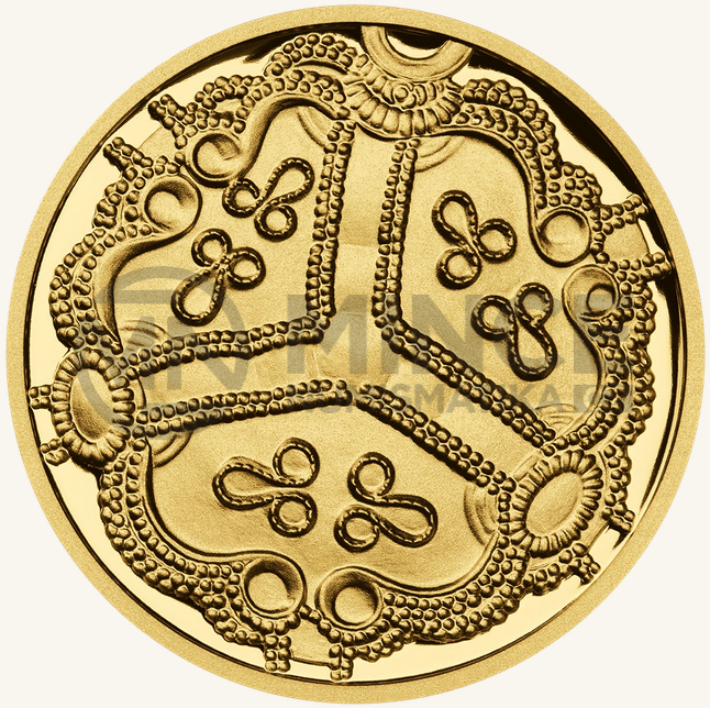 Na reverzu je vypodobněn ozdobný gombík, který byl nalezen spolu s ostatky sv. Ludmily, je tedy zřejmé, že byl v jejím osobním vlastnictví a jako každá žena se ráda zdobila.