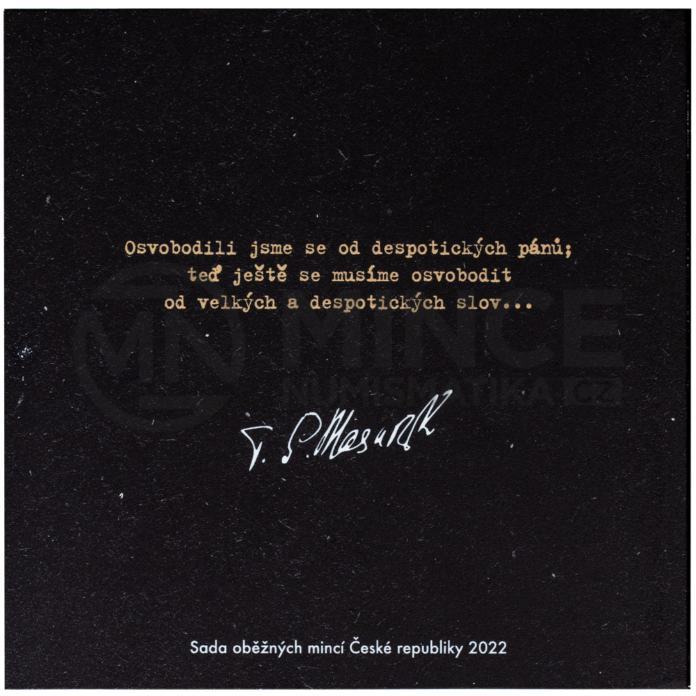 Tato sada českých oběžných mincí 2022 byla vytvořena na připomenutí 85. výročí úmrtí Tomáše Garrigue Masaryka.