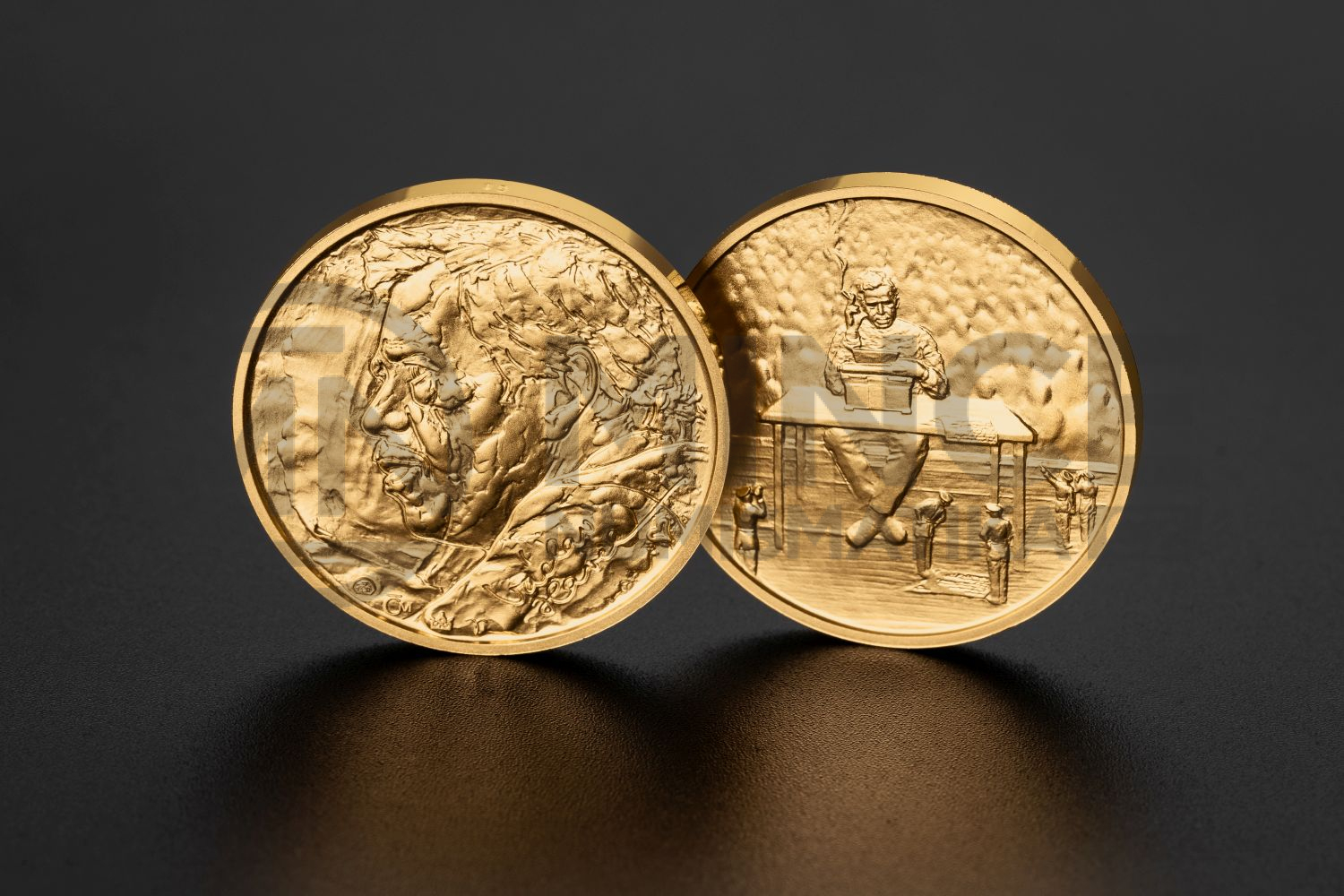 Sám autor Adam Alva Fejfar, pevná součást Českých dukátů, k tomu dodává: „Přední strana zachycuje portrét přecházející až do roviny symbolu sametové revoluce a demokracie. Na druhé straně je Havel jako spisovatel, filozof a dramatik, který své odpůrce nikdy nevnímal jako nepřátele. Vždy se je snažil pochopit, spíše než démonizovat. A přesto byl neustále sledován a hlídán Státní bezpečností. Jeho život tak často nabýval podoby absurdního dramatu. Sám si to velmi dobře uvědomoval, což dokládá i rozhovor mezi ním a britskou královnou Alžbětou II.:"Pane Havle, jaké je to stát se ze dne na den z vězně prezidentem?" "Výsosti, kdyby se teď támhlety dveře otevřely a přišli si mě odvést, vůbec bych se tomu nedivil."