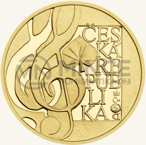 Na reverzu je použit stejný princip kontrastu proofové plochy s nevyhlazeným povrchem reliéfního motivu. Opakuje se tedy motiv partitury, tentokrát však noty zastupuje nápis ČESKÁ REPUBLIKA, opět v originálním uměleckém typografickém – hravém – zalomení. Dominantním motivem reverzu je notový klíč, symbol hudby. Je pojat tak, jako by se právě zrodil, „vyloupl“ z české země, kterou zde evokuje zemitá