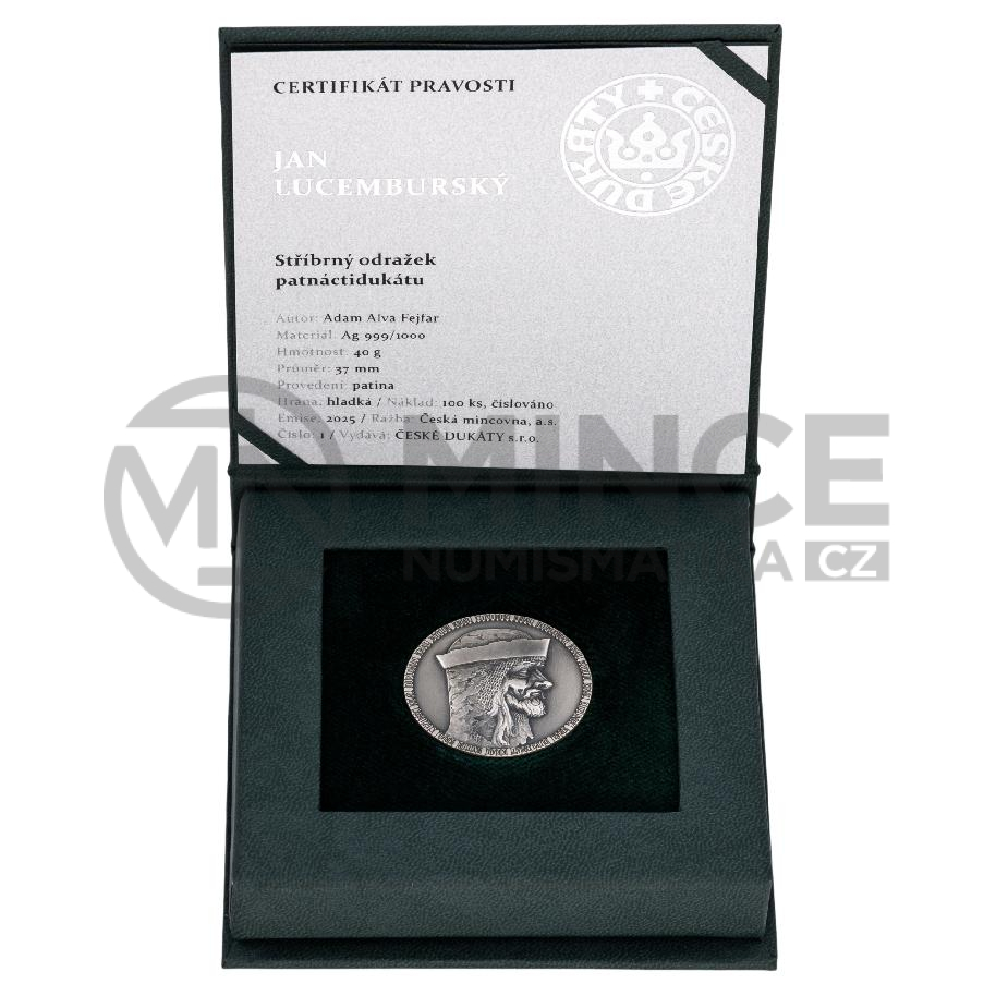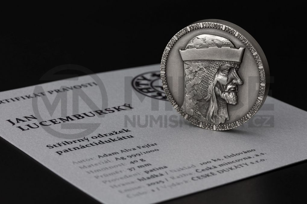 Averzní strana nese portrét Jana Lucemburského – krále, který pozvedl prestiž české koruny a získal si pověst rytíře napříč Evropou. Jeho tvář tu není pouze panovnickým symbolem, ale nositelem ideálů cti, odvahy a státnické vize. Reverz zdobí stylizovaná lilie, přímý odkaz na slavný florén – minci, kterou nechal Jan razit, aby české země zařadil po bok velmocí své doby.