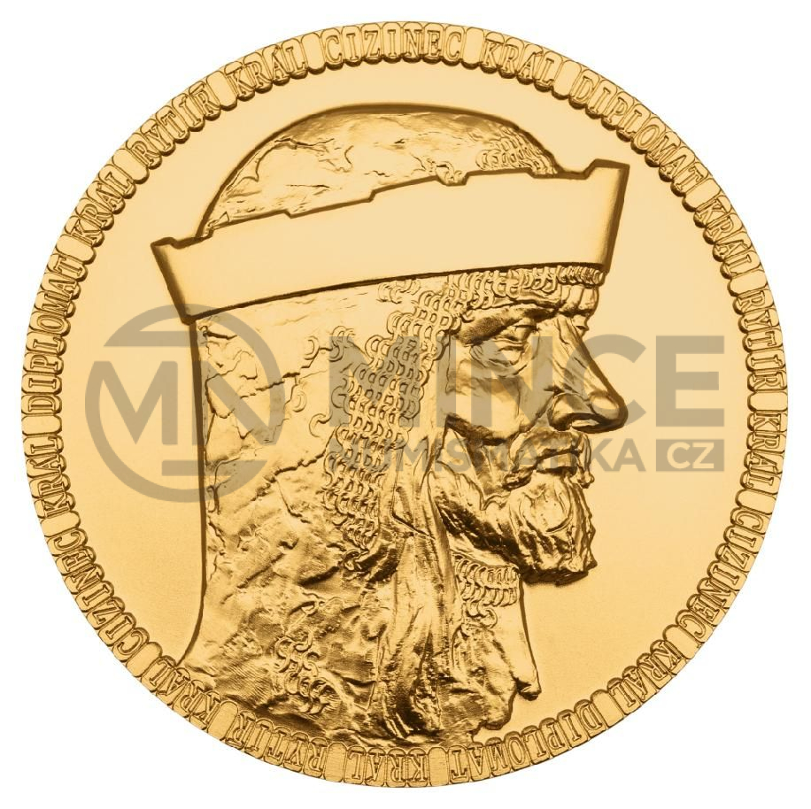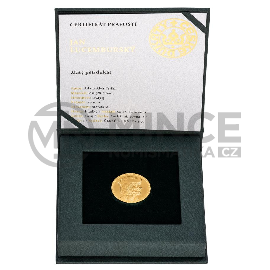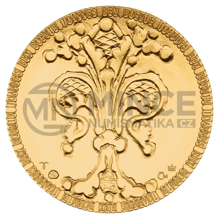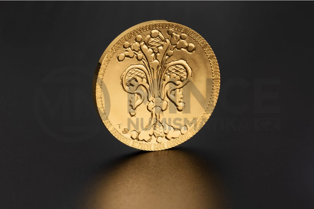 Averzní strana nese portrét Jana Lucemburského – krále, který pozvedl prestiž české koruny a získal si pověst rytíře napříč Evropou. Jeho tvář tu není pouze panovnickým symbolem, ale nositelem ideálů cti, odvahy a státnické vize. Reverz zdobí stylizovaná lilie, přímý odkaz na slavný florén – minci, kterou nechal Jan razit, aby české země zařadil po bok velmocí své doby.