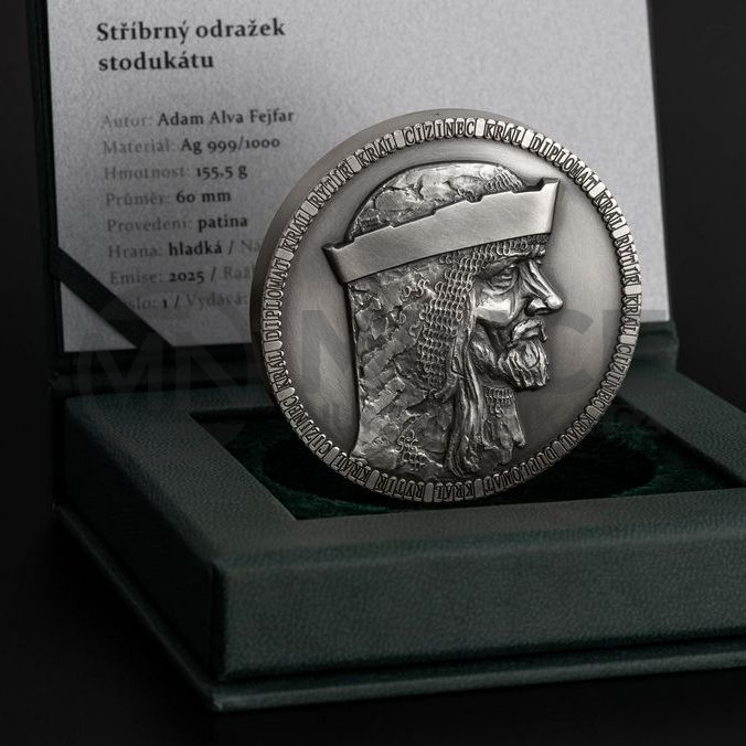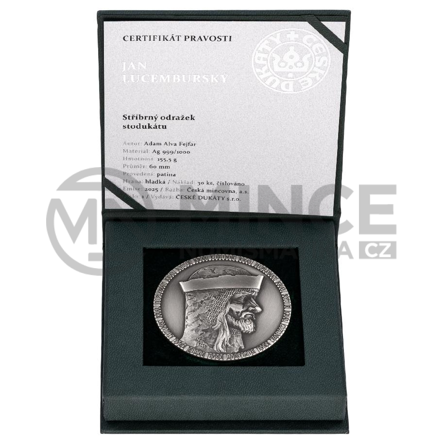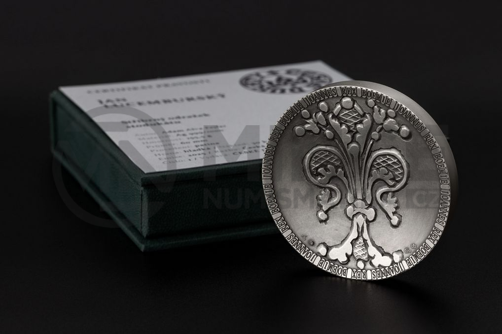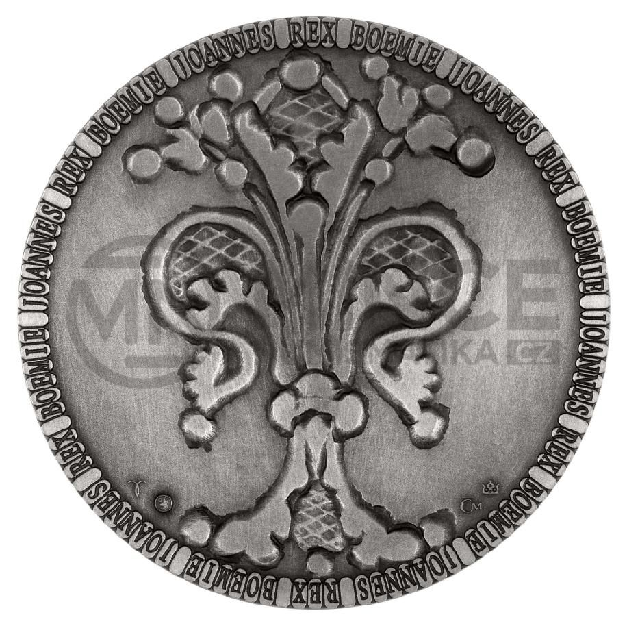 Averzní strana nese portrét Jana Lucemburského – krále, který pozvedl prestiž české koruny a získal si pověst rytíře napříč Evropou. Jeho tvář tu není pouze panovnickým symbolem, ale nositelem ideálů cti, odvahy a státnické vize. Reverz zdobí stylizovaná lilie, přímý odkaz na slavný florén – minci, kterou nechal Jan razit, aby české země zařadil po bok velmocí své doby.