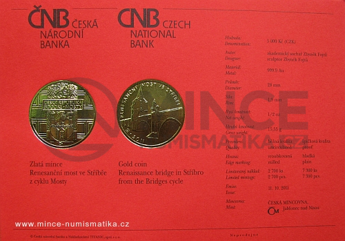 Pamětní zlatá mince v nominální hodnotě 5000 Kč z cyklu "Mosty České republiky".