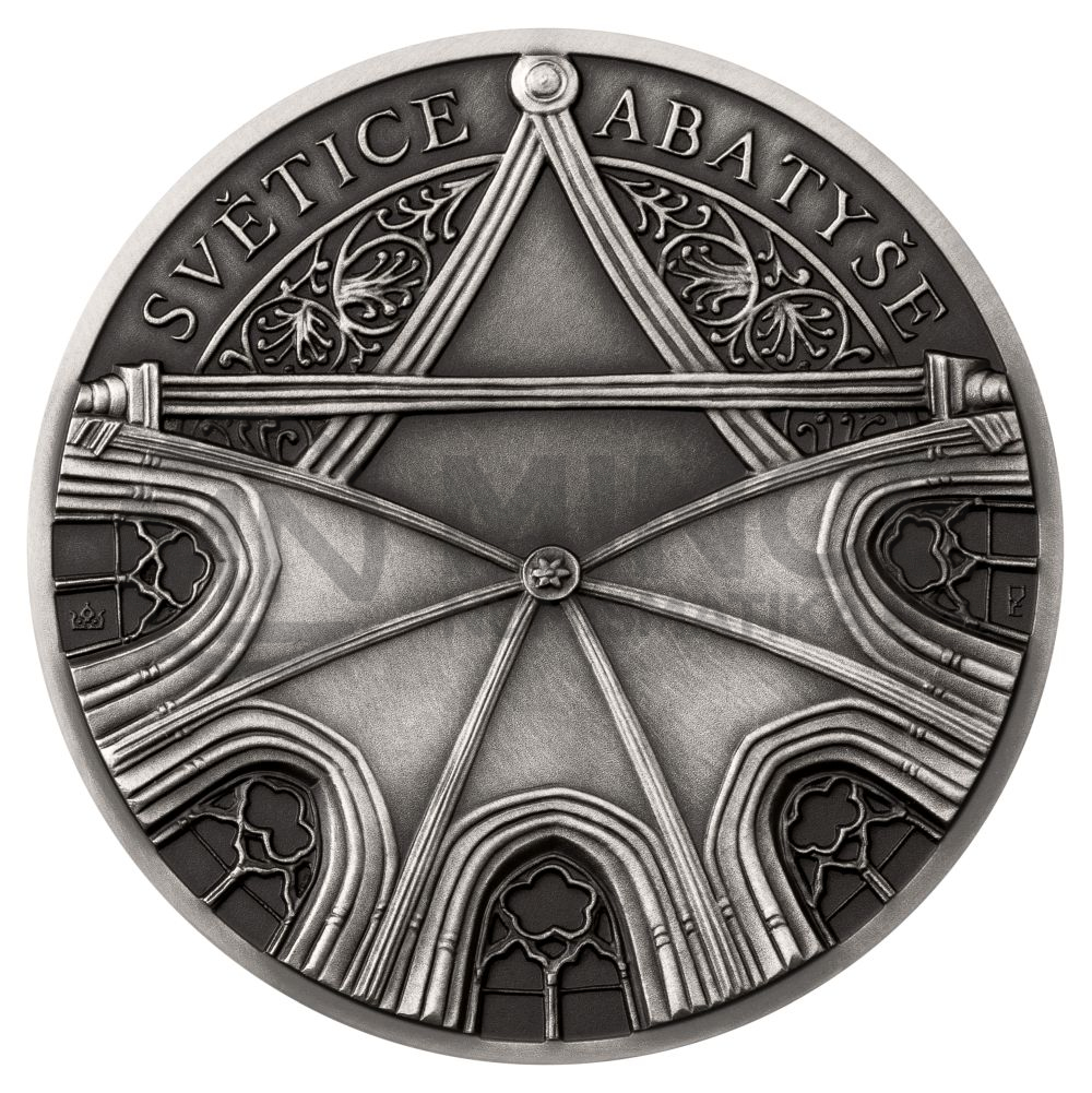 Na reverzu jsem se inspiroval původní padesátikorunovou bankovkou, kde byla vyobrazena architektura z Anežského kláštera. Přijde mi velmi originální zobrazit pohled zdola na okna s klenbami z kostela sv. Krista Spasitele a uprostřed pomocí kleneb a ornamentů sestavit velké písmeno A – jako Anežka. Zadní stranu doplňuje nápis světice a abatyše, aby to ještě více vystihlo téma sv. Anežky.