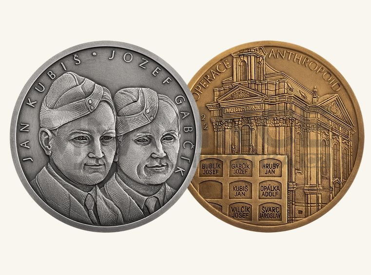 Dominantu reverzu měděné medaile tvoří pravoslavný chrám sv. Cyrila a Metoděje v Resslově ulici. Kompozice je doplněna detailem z krypty kostela, v jednotlivých úložných prostorách jsou jména parašutistů, kteří v chrámu zemřeli.