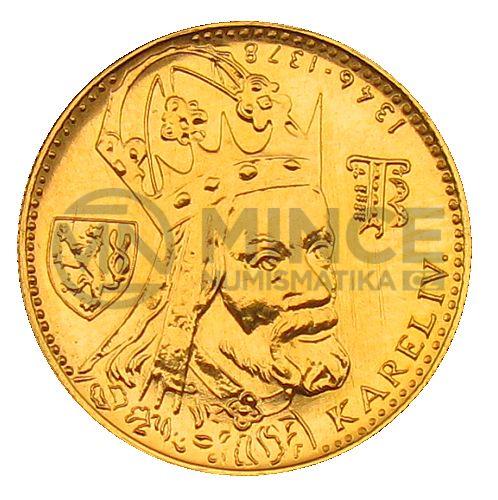 Dukát zobrazuje Karla IV. podle dobového portrétu, českého lva, iniciálu Karla IV.