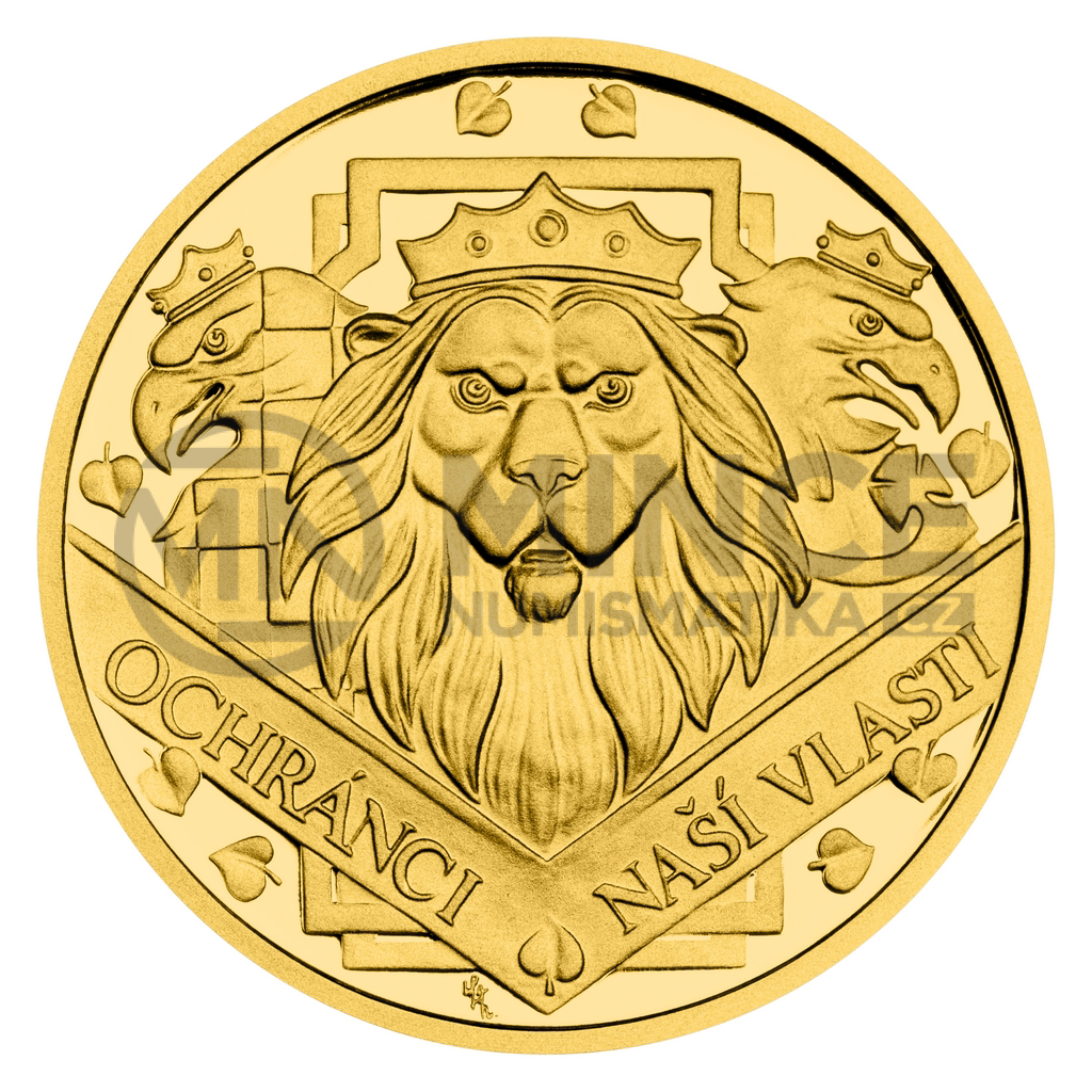 Medailérka Lenka Nebeská, DiS., věnovala averzní stranu dukátu trojici rytířů v plné zbroji. Jejich štít předkládá českého lva a v pozadí za nimi se vypíná hora Blaník. Reverzní strana, která je společná všem čtyřem ražbám Dukátové řady, pak nese heraldická zvířata českých zemí – lva a dvě orlice.