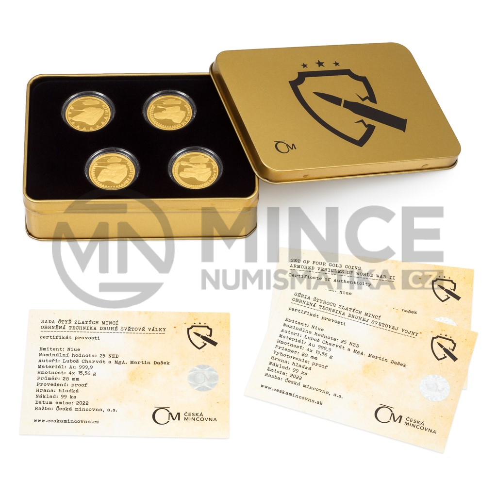 Ty nejznámější tanky bojující na všech frontách druhé světové války představuje sada čtyř zlatých mincí: