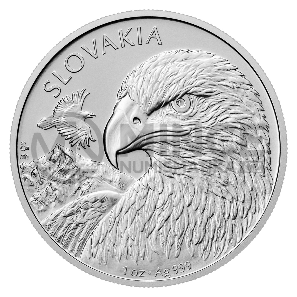 Orol: Reverzní straně mince vévodí orel skalní, který je pánem Tater, a v pozadí za ním se tyčí velkolepý horský vrchol Kriváň. Doplňkovým motivem je ještě jeden letící dravec. Reliéf vytvořil medailér Mgr. Art. Miroslav Hric, Art. D.