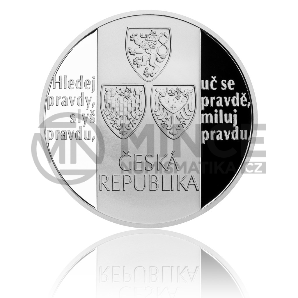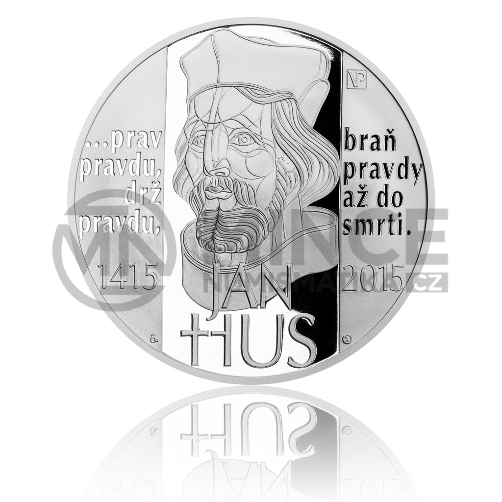 Druhá z medailí je nerealizovaným návrhem bankovní emise 10 000Kč zlaté mince připomínající 600. výročí upálení Mistra Jana Husa. Ač návrh v soutěži nezvítězil, získal pro svou výjimečnou uměleckou hodnotu mimořádnou odměnu od ČNB. Jeho vyražení bylo velkým autorovým přáním, které se Česká mincovna s nadšením rozhodla vyplnit. Na lícní straně se skví netradiční zpracování portrétu Mistra Jana Husa v plamenech, jméno reformátora a letopočty vymezující kulaté výročí jeho mučednické smrti. Reverz nese úryvek z Mistrova díla Výklad viery z roku 1412: „…hledej pravdu, uč pravdu, mluv pravdu, braň pravdu až do smrti.“