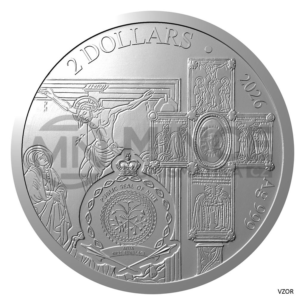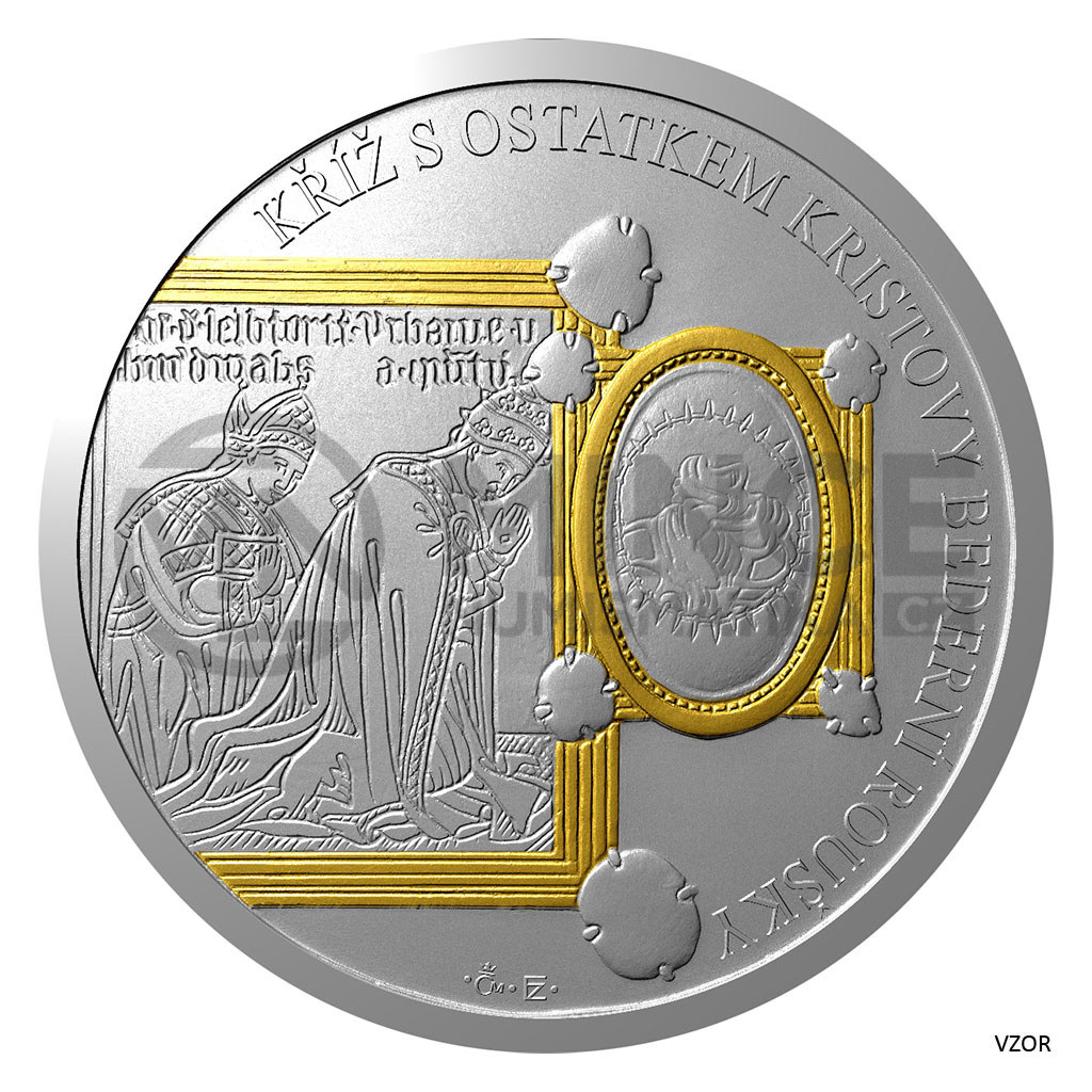 Pátá sada dvou stříbrných mincí České mincovny z volného cyklu, který je věnován Svatovítskému pokladu, připomíná význam kříže s ostatkem Kristovy bederní roušky.