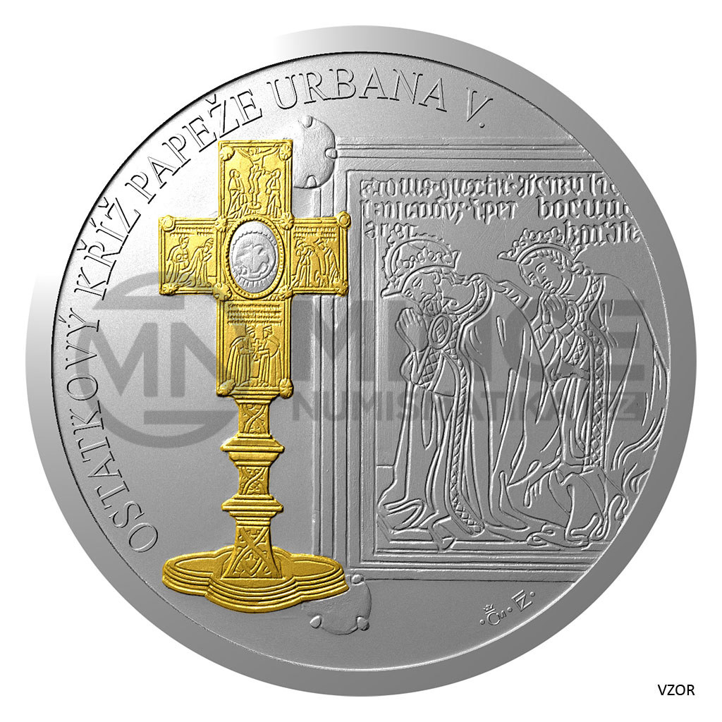 Dvoudílná sada je dílem akademického sochaře Zbyňka Fojtů. Reverzní strana první mince je věnována celkovému pohledu na kříž a detailnímu vyobrazení Karla IV. s Václavem IV. Na druhém reverzu najdete pohled na křišťálovou schránku s relikvií a detailní vyobrazení Urbana V. s Pierrem Rogerem de Beaufort. Averzní straně, která je společná oběma mincím, pak vévodí ještě jedno vyobrazení kříže doplněné detailním motivem ukřižování. Protože licenci k vydávání pamětních mincí České mincovny poskytuje tichomořský ostrov Niue, averzní strany nesou ještě jeho nezbytné atributy – státní znak, nominální hodnotu 2 DOLLARS (NZD) a rok vydání 2026.