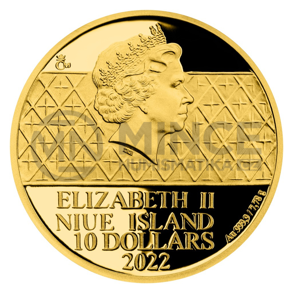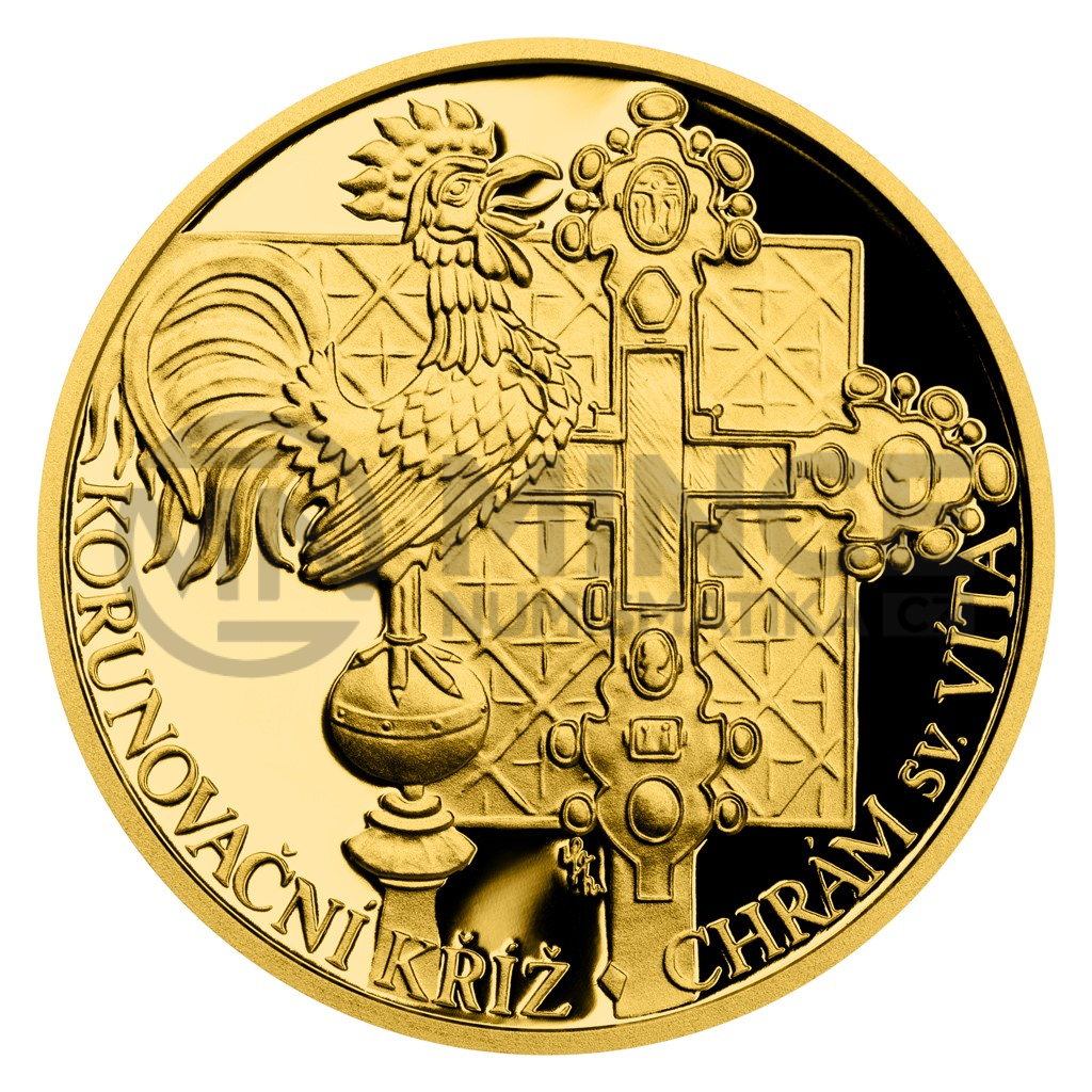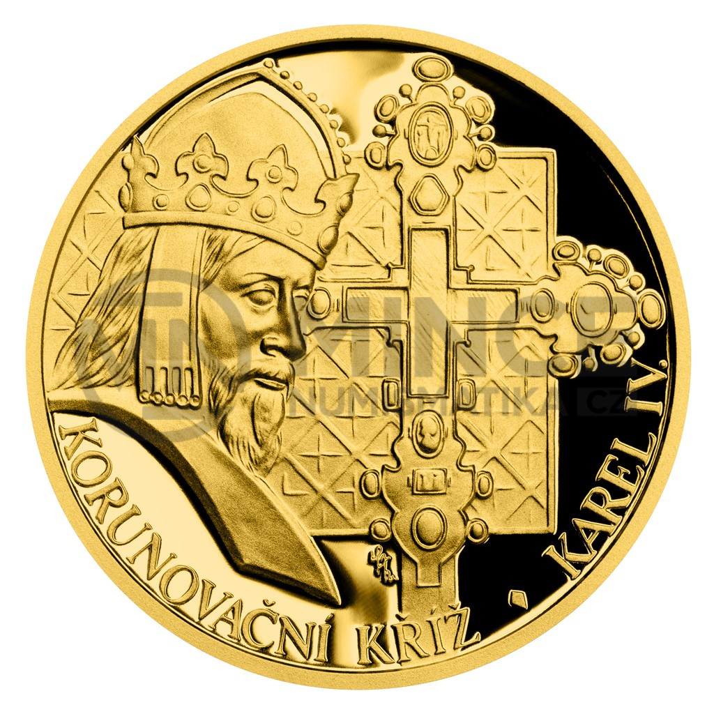 Korunovační kříž najdete na reverzní straně obou zlatých mincí v sadě. V reliéfu první mince ho doprovází korunovaný portrét Karla IV. z profilu. Doplňkovým motivem druhé mince je symbol chrámu svatého Víta v podobě svatovítského kohouta, který je umístěn na hřebeni katedrály jako korouhvička. Averzní strana je společná oběma mincím a nese dekorativní ornamenty. Protože licenci k vydávání pamětních mincí České mincovny poskytuje tichomořský ostrov Niue, nese averz ještě jeho nezbytné atributy – státní znak, nominální hodnotu 10 DOLLARS (NZD) a rok vydání 2022. To vše je dílem medailérky Lenky Nebeské, DiS.