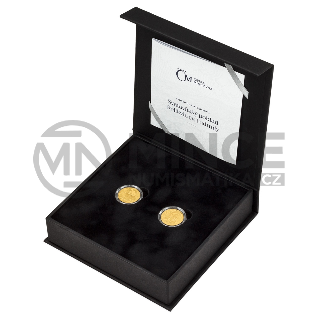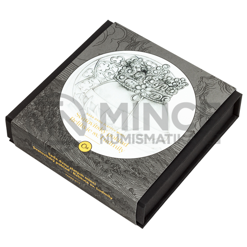 Sada dvou zlatých mincí České mincovny, která připomíná význam relikvií svaté Ludmily, je třetí emisí z volného cyklu věnovaného Svatovítskému pokladu.