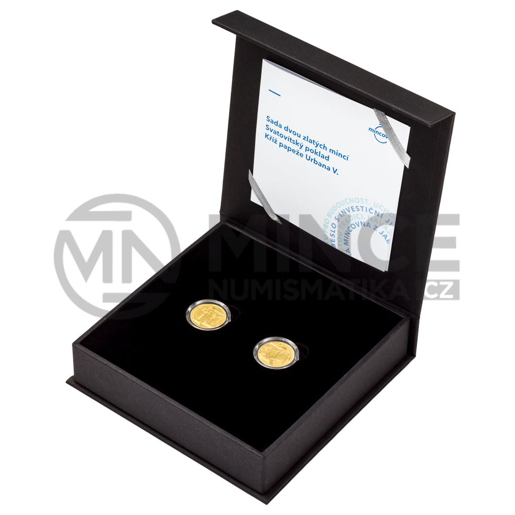 Druhá sada dvou zlatých mincí České mincovny z volného cyklu, který je věnován Svatovítskému pokladu, připomíná význam relikvií svatého Václava.