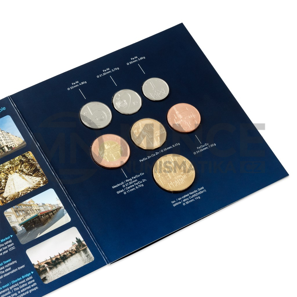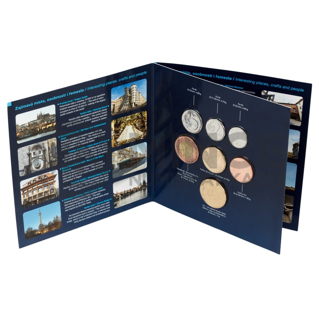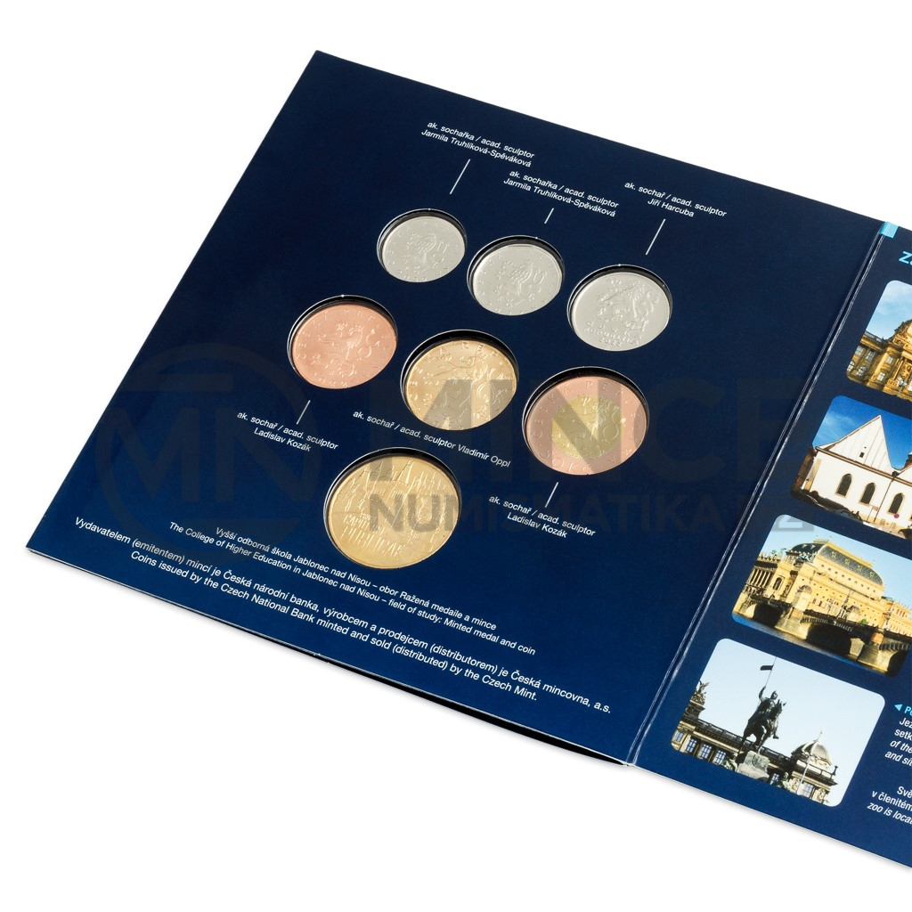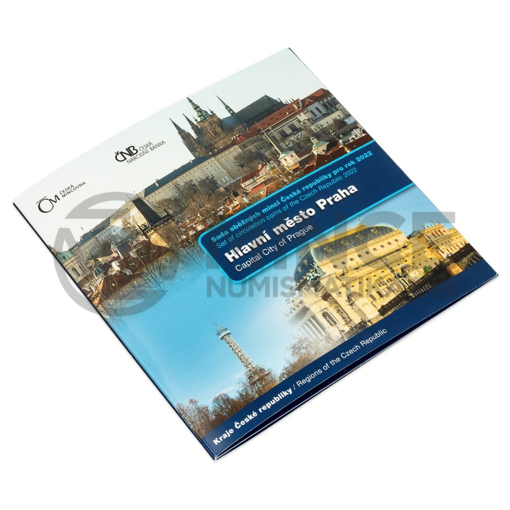 Ikonické pražské památky připomíná pamětní žeton z dílny medailérky Veroniky Prokopové, který je nedílnou součástí sady. „Jako hlavní motiv žetonu jsem použila Karlův most, který spojuje historické centrum Prahy na dvou březích řeky Vltavy. Na averzní straně jsem zachytila pohled na Staré Město. Reverzní strana pak předkládá protější břeh s Malou Stranou a Hradčany. Perspektivně provedené nápisy HLAVNÍ MĚSTO PRAHA 2022 a PRAGA CAPUT REI PUBLICAE (Praha, hlava republiky) evokují davy lidí, které každodenně procházejí po Karlově mostě,“ říká studentka jablonecké medailérské školy. V sadě oběžných mincí pochopitelně nemůže chybět oběživo – konkrétně šestice kovových platidel s nominálními hodnotami 1, 2, 5, 10, 20 a 50 Kč, která byla vyražena v roce 2022 a nikdy neprošla oběhem.