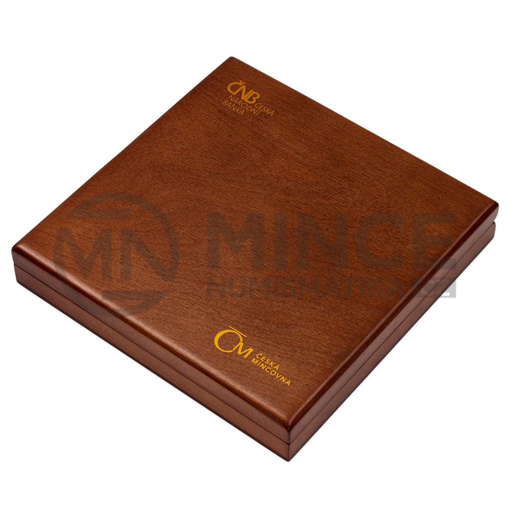 Komplet je doplněn číslovaným certifikátem pravosti, který vyrobila Státní tiskárna cenin, a uložen do elegantní dřevěné etue.
