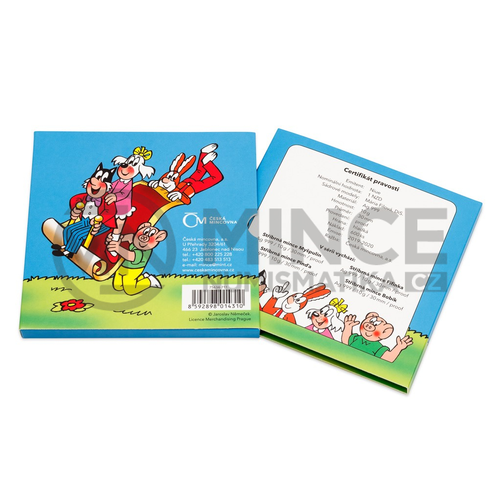 Kompletní sbírku čtyř komiksových mincí s Myšpulínem, Pinďou, Fifinkou a Bobíkem si můžete uložit do veselého sběratelského alba, které je nedílnou součástí Myšpulínovy mince.