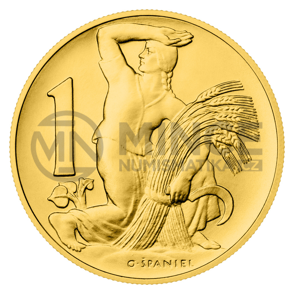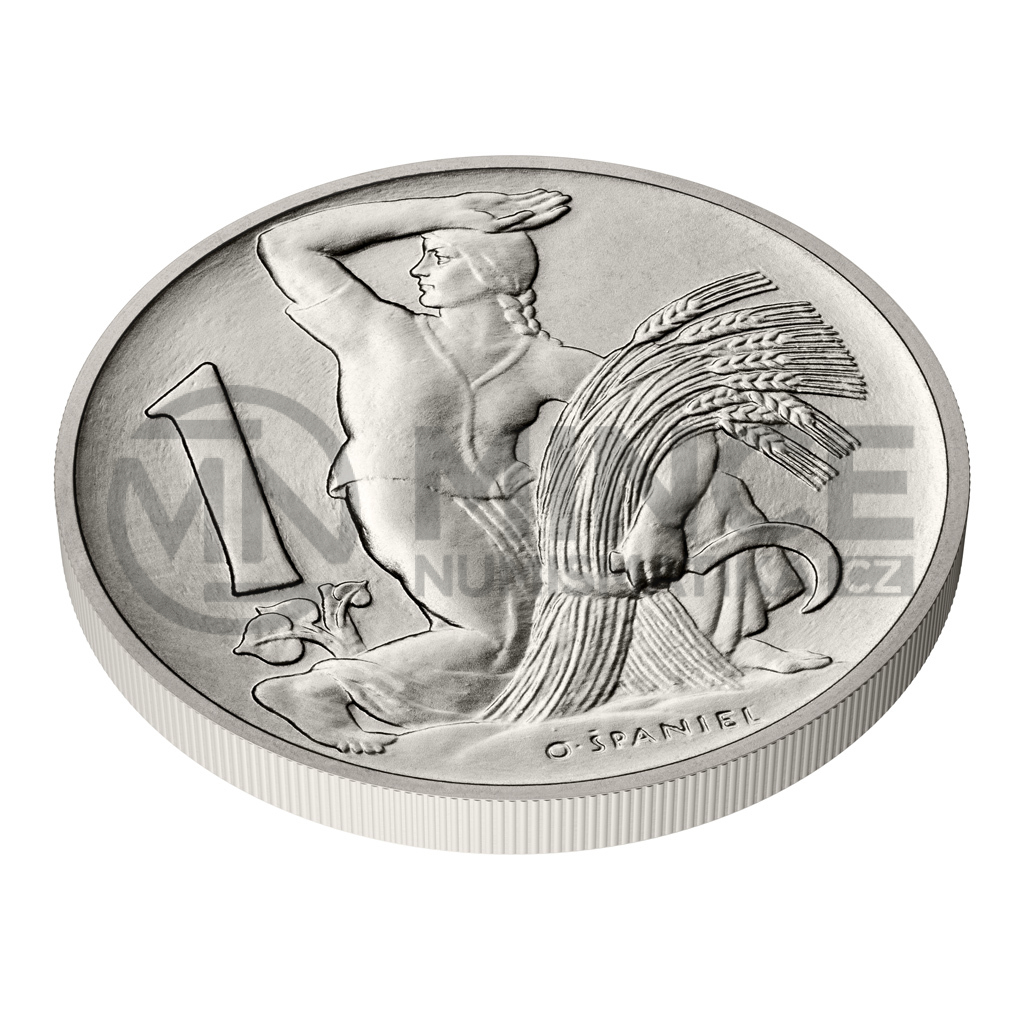 Československá republika byla vybudována na troskách Rakouska-Uherska v roce 1918, ale na svou vlastní měnu si musela počkat. Koruna československá byla prohlášena za měnu nového státu zákonem z roku 1919, a zatímco Rakousko a Maďarsko musely po katastrofálním zhroucení modifikované rakousko-uherské měny přejít na šilink a pengö, v Československu přežil název staré měny – byť s jiným přívlastkem – jako v jediném nástupnickém státu monarchie. Nejprve u nás platily okolkované rakousko-uherské bankovky, poté provizorní státovky a pak se konečně objevily mince – dvacetihaléř, padesátihaléř a koruna. Výtvarná soutěž na podobu kovových platidel, ve které zvítězil fenomenální umělec Otakar Španiel, byla vyhlášena již v roce 1919, ale příprava na ražbu trvala tři roky. Jediná československá mincovna, která se nacházela ve slovenské Kremnici, byla totiž při odchodu Maďarů vydrancována, a tak neměla k dispozici potřebné stroje ani materiál. Čekání do roku 1922 se však vyplatilo – československá korunová mince, jejíž prvotní náklad čítal 50 milionů mědiniklových kusů, představovala absolutní špičku evropské mincovní tvorby a podstatně ovlivnila následující generace medailérů. Zatímco líc předkládal československého heraldického lva, rub nesl lipovou ratolest a „obraz klečící ženy, která drží v levici snop klasů se srpem a pravicí si stírá s čela pot“.