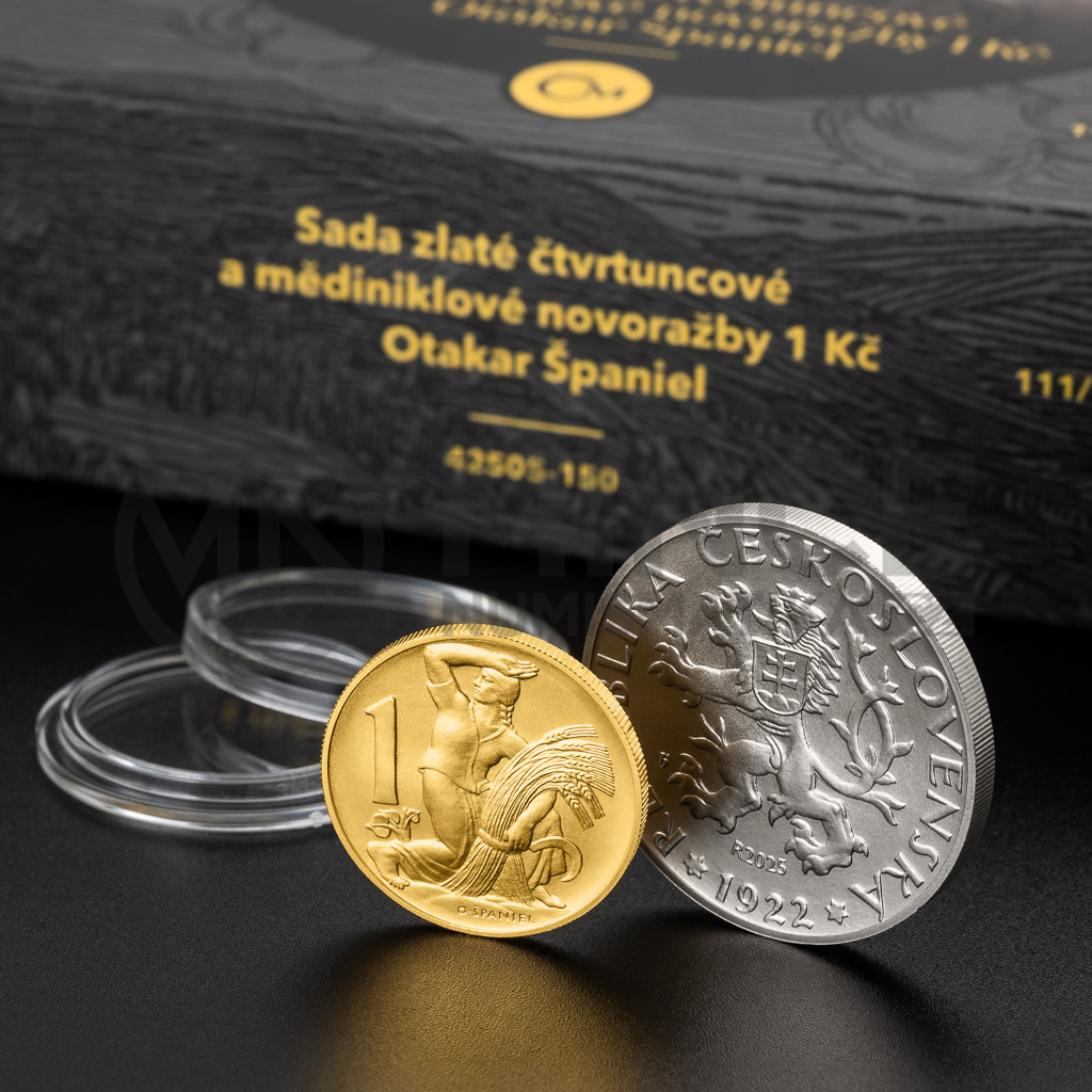 Otakar Španiel je ve světě numismatiky skutečným pojmem. Největšího obdivu se dostává jeho prvorepublikovým Svatováclavským dukátům a pak korunové minci, které vzdává hold sada České mincovny. Tu tvoří dvě novoražby – jedna z autentického mědiniklu a druhá ze vzácného zlata.