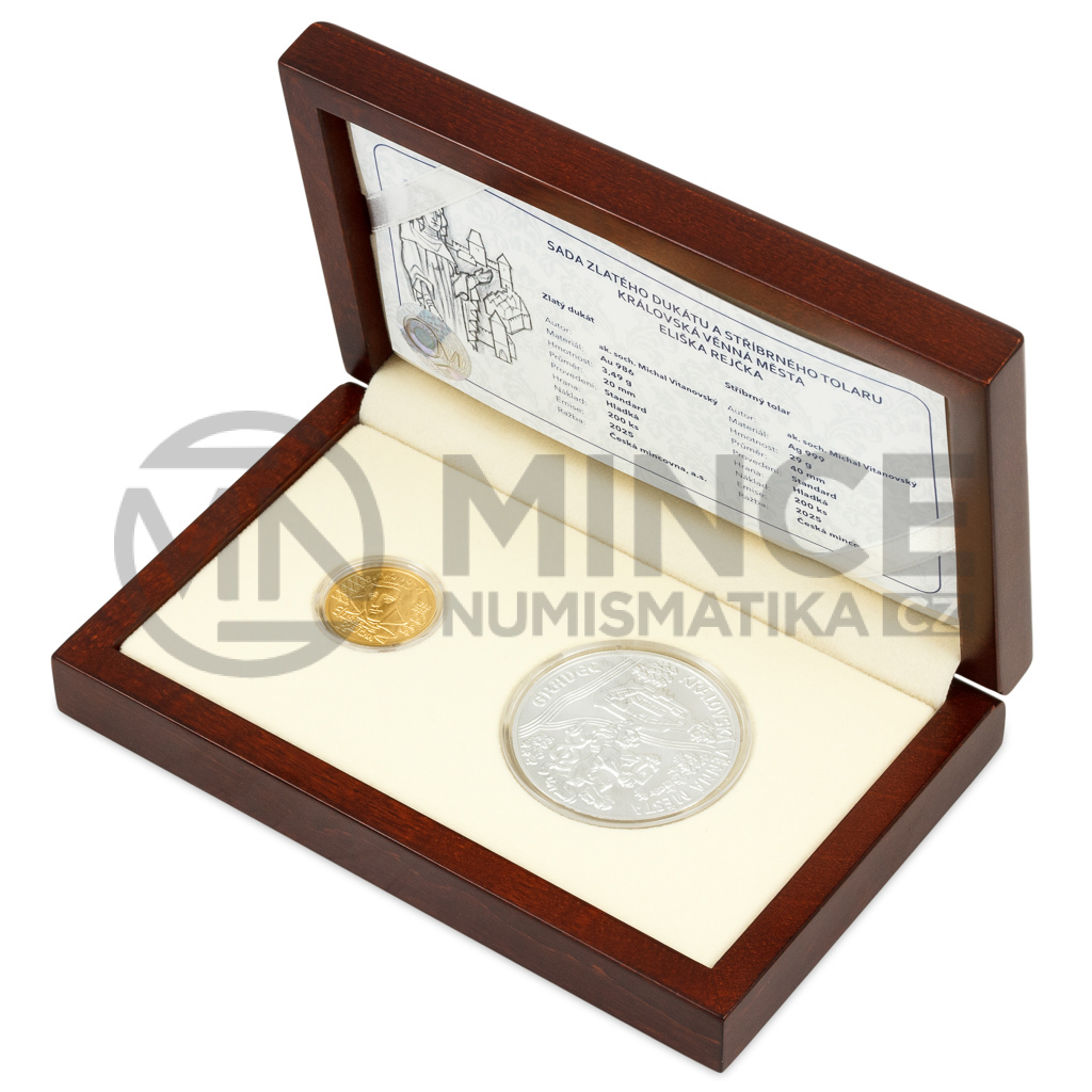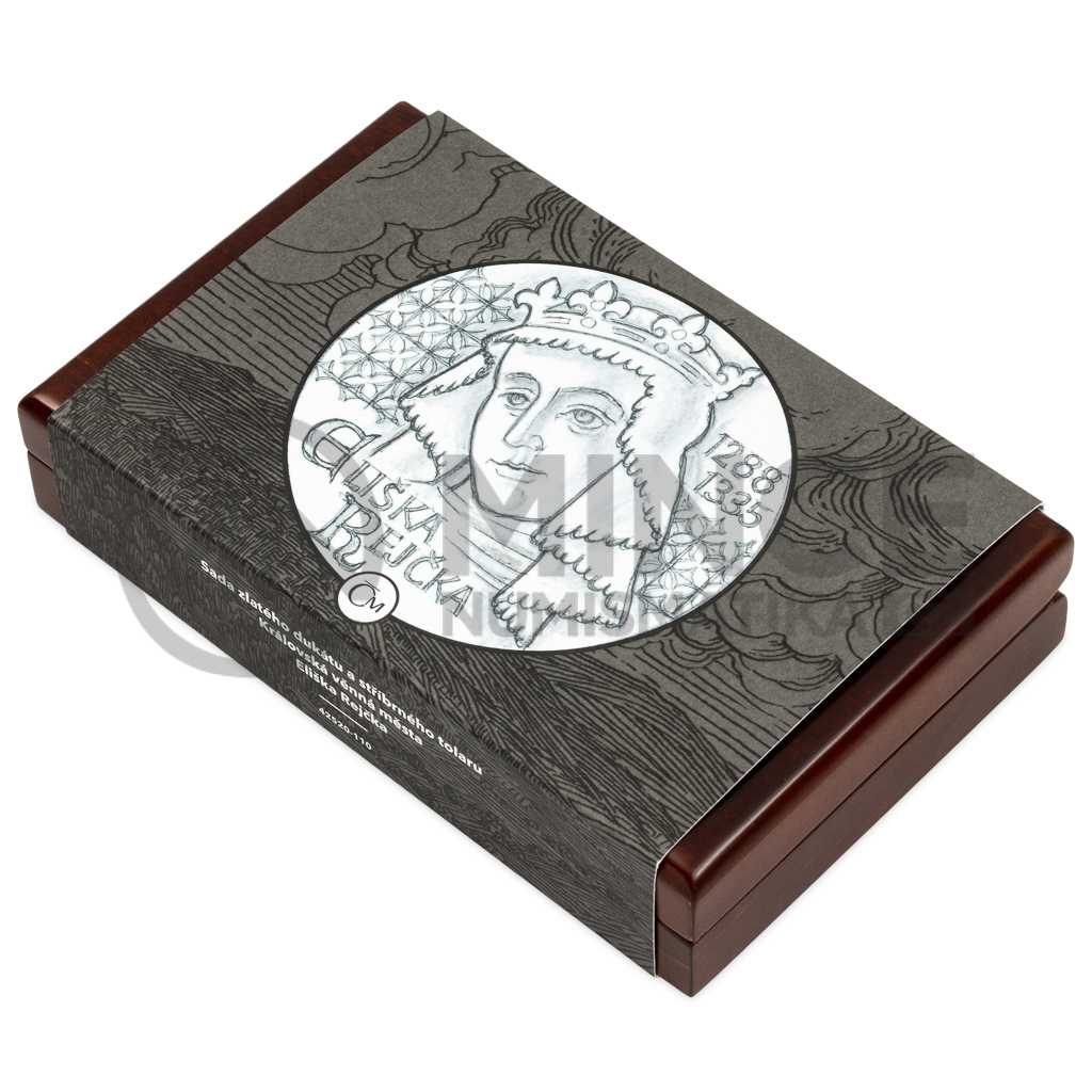První sada zlatého dukátu a stříbrného tolaru z cyklu České mincovny s názvem Královská věnná města připomíná neklidné osudy Elišky Rejčky.