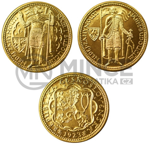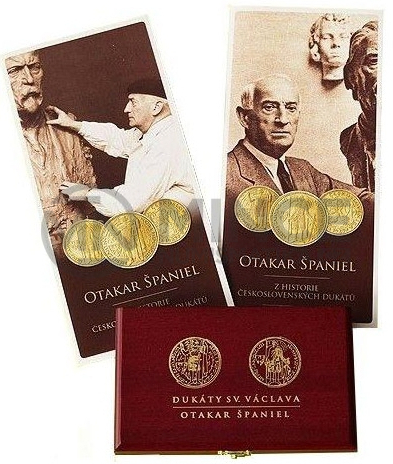 Zberateľské zlaté medaily vo veľkosti 1-dukátu s motívom Súťažných návrhov na prvé Československé dukáty z roku 1923 od autora Otakara Španiela - sochára, medailéra, rezbára a pedagóga.