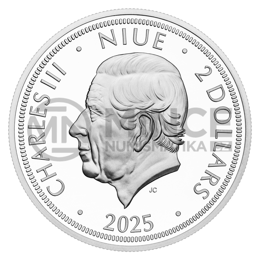 Reverzní straně mince vévodí český lev v realistickém podání a v živých barvách, který má na hlavě Svatováclavskou korunu. Doplňkovým motivem je česká vlajka a orlice, jež je syntézou svatováclavského, moravského a slezského dravce. Autorem reliéfu je již tradičně medailér Asamat Baltaev, DiS. Protože mince České mincovny vycházejí v licenci zahraničního emitenta, kterým je ostrov Niue, jejich averzní strana nese jeho nezbytné atributy – portrét krále Karla III., nominální hodnotu 2 DOLLARS (NZD) a rok emise 2025.