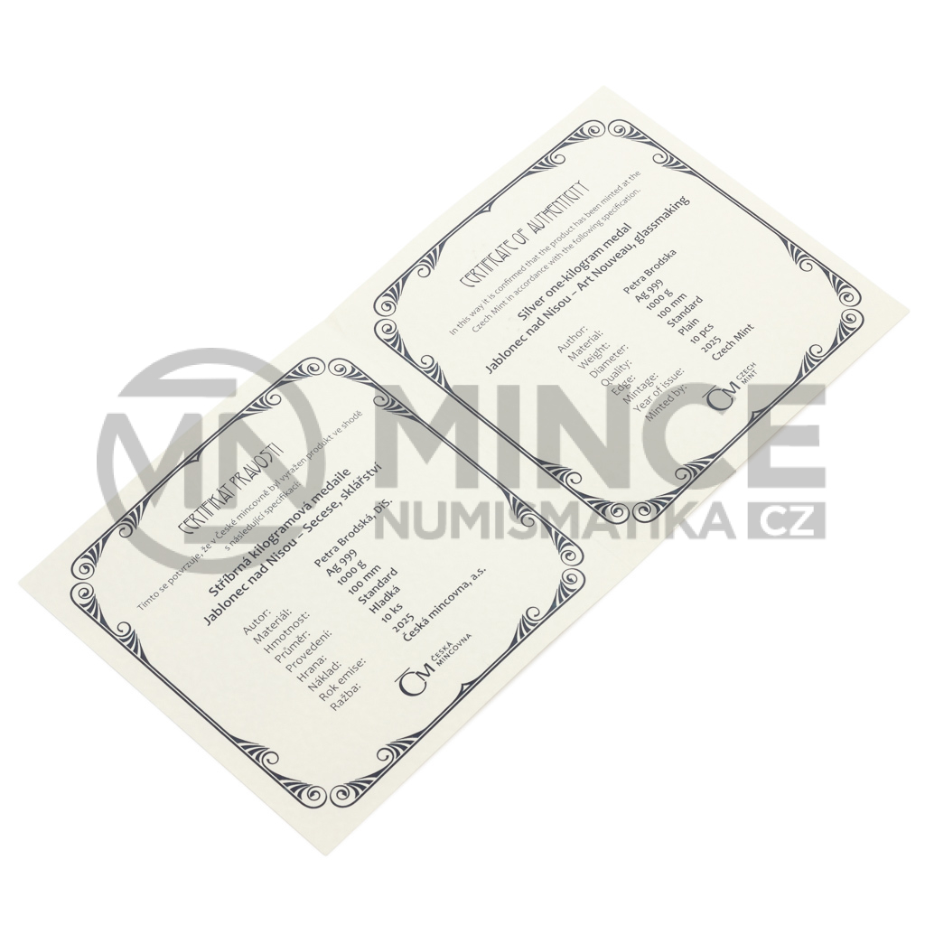 Unikátní pamětní medaile České mincovny vyražená z jednoho kilogramu ryzího stříbra vzdává hold Jablonci nad Nisou – jeho architektuře a sklářství.