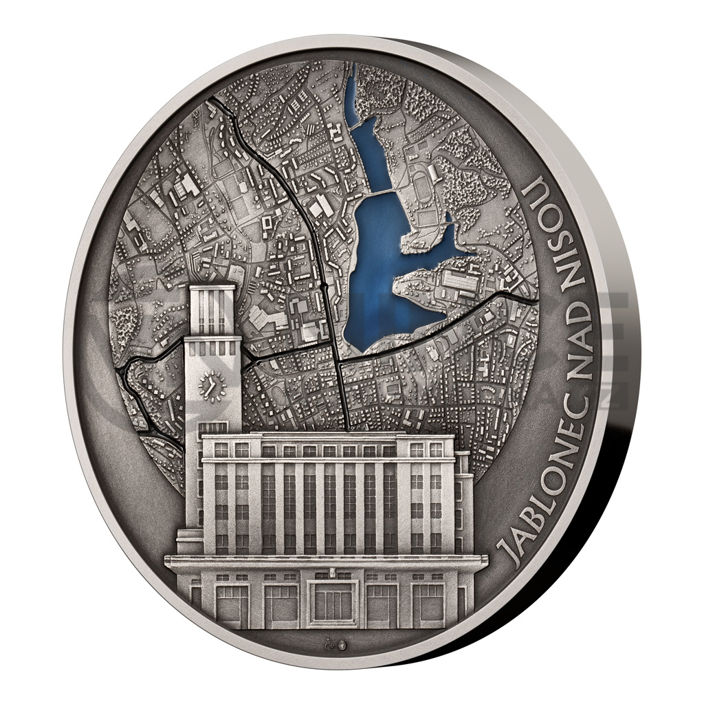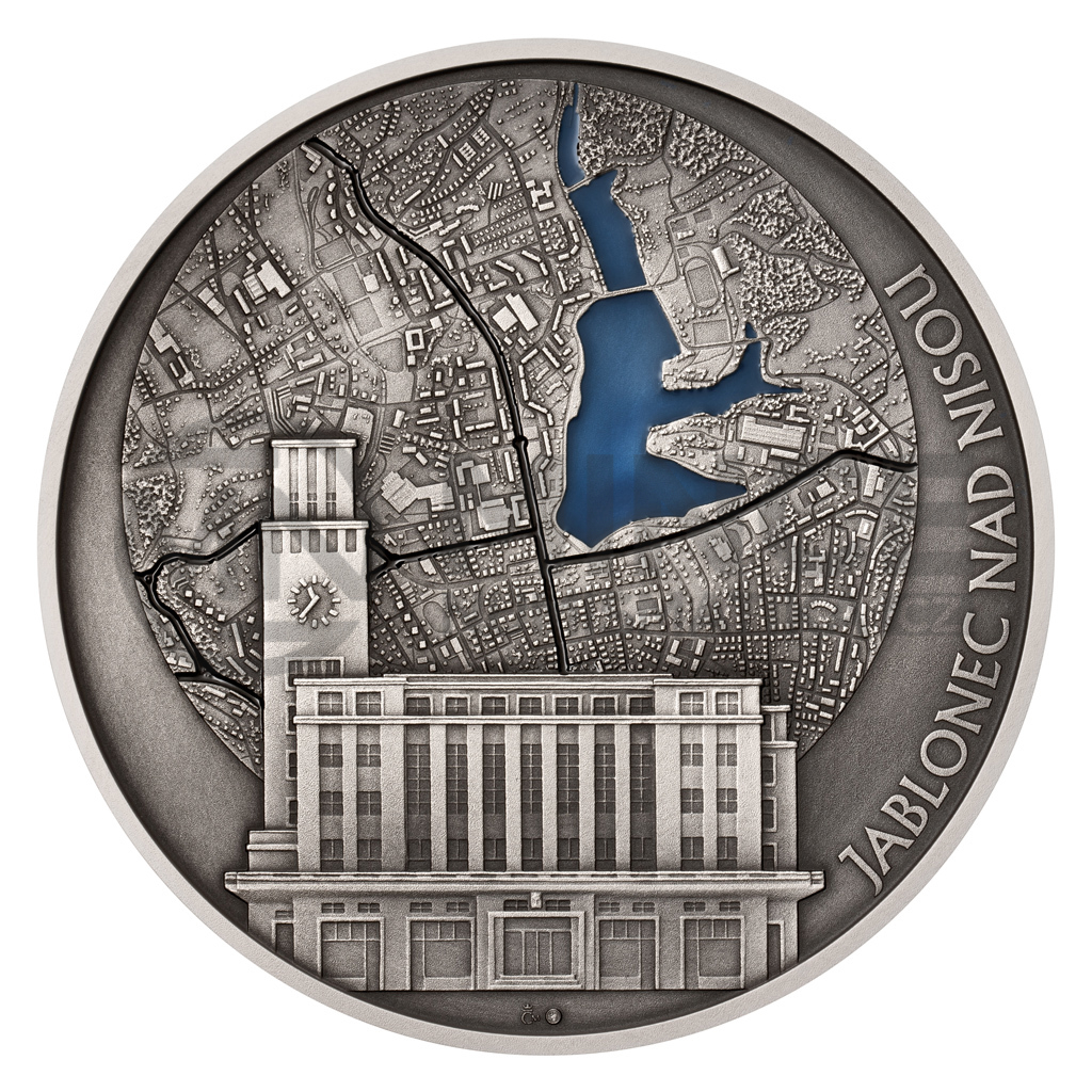 Averzní straně medaile, která je věnována Jablonci nad Nisou, vévodí Nová radnice. Monumentální funkcionalistickou budovu postavenou ve 30. letech 20. století vyobrazila medailérka Irena Hradecká, DiS. Kompozici averzu dotváří pohled na město z ptačí perspektivy. „Jsou tam takové detaily jako střechy domů i s komíny nebo tobogán u městského bazénu, pokud se někdo pozorně podívá,“ říká medailér Jakub Matouš, DiS. Vodní plocha jablonecké přehradní nádrže Mšeno je spolu s hlavními pozemními komunikacemi vyplněna barevným smaltem. Reverzní strana pamětní medaile je pak věnována České mincovně. „Pracoval jsem s motivy českých oběžných mincí. Zobrazil jsem je vždy z té strany, na které se nachází nominální hodnota – s výjimkou padesátikoruny jde tudíž o rubové strany. Zbylou plochu jsem vyplnil jednotlivými letopočty existence České mincovny od roku 1993 do roku 2023,“ říká student jablonecké medailérské školy David Špryňar.