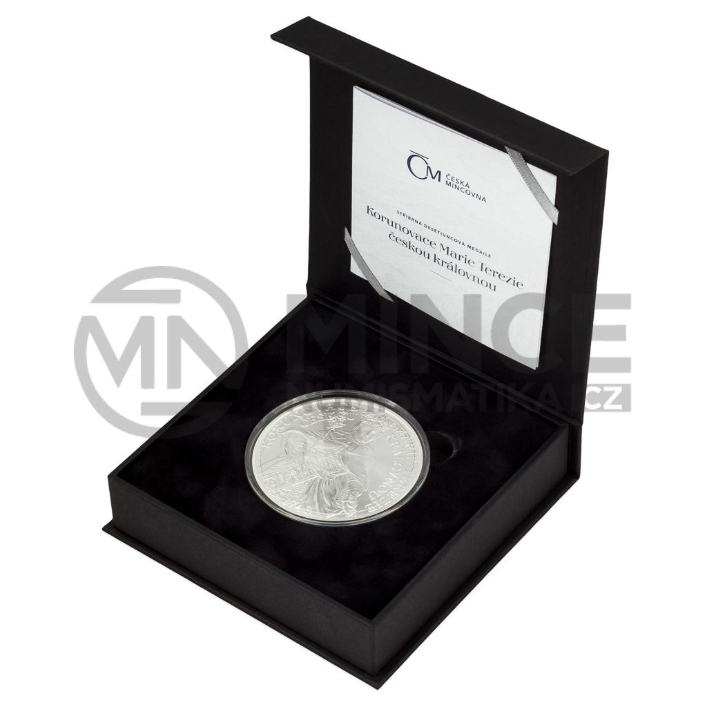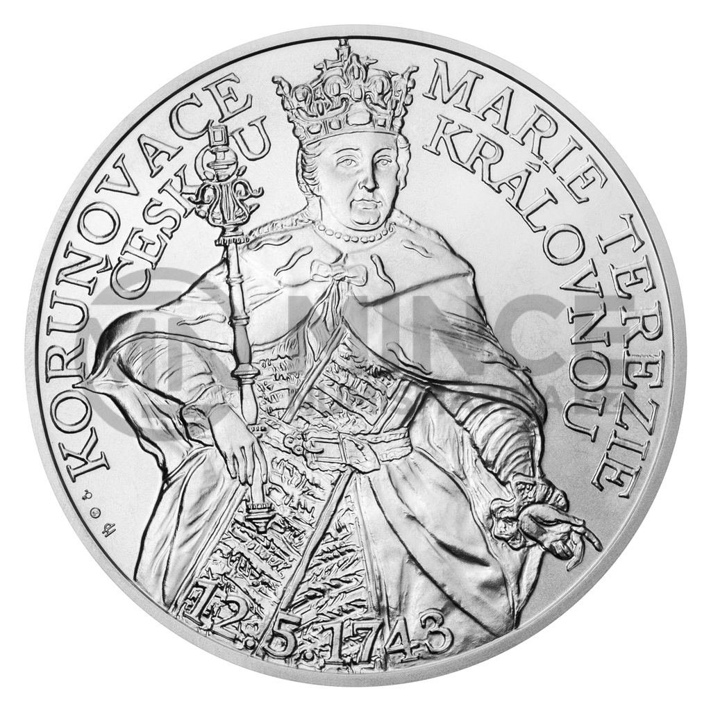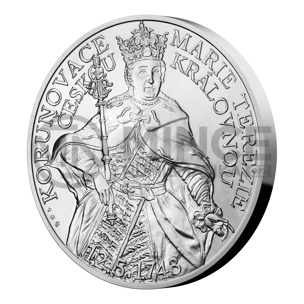 Averzní strana medaile, která je dílem Mgr. Petra Horáka, předkládá Marii Terezii se žezlem v ruce a se Svatováclavskou korunou na hlavě. Kompozici averzu dotváří opis KORUNOVACE MARIE TEREZIE ČESKOU KRÁLOVNOU 12. 5. 1743. Korunu českých králů najdete i na reverzní straně medaile, kde ji doprovází pohled do interiéru chrámu svatého Víta.