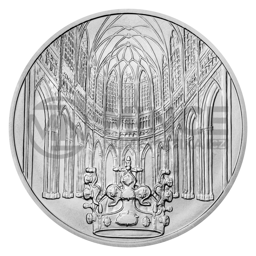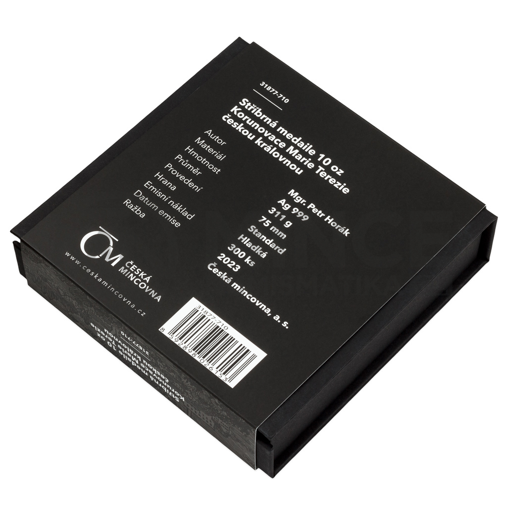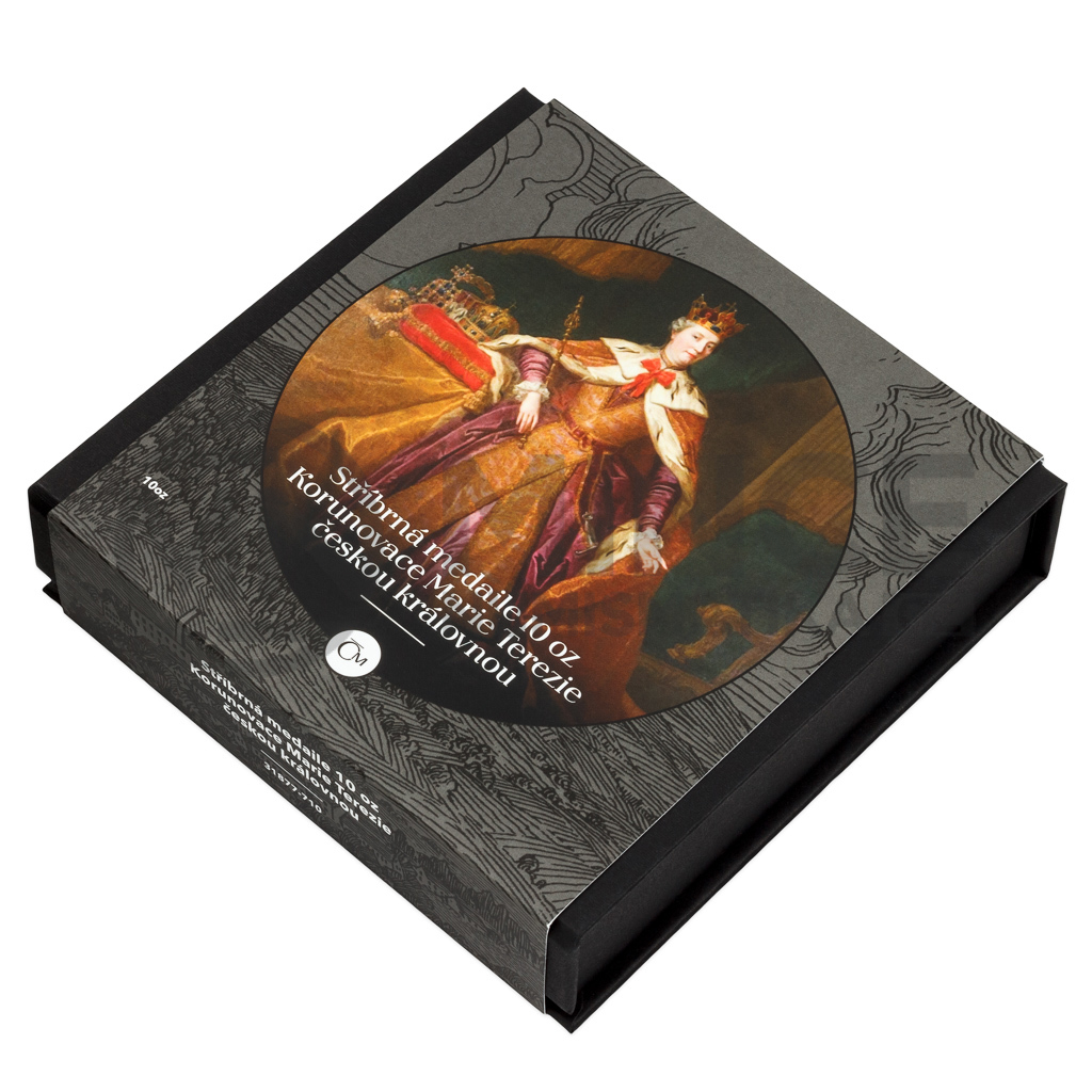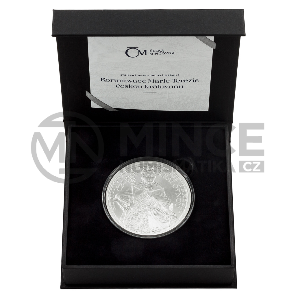 Averzní strana medaile, která je dílem Mgr. Petra Horáka, předkládá Marii Terezii se žezlem v ruce a se Svatováclavskou korunou na hlavě. Kompozici averzu dotváří opis KORUNOVACE MARIE TEREZIE ČESKOU KRÁLOVNOU 12. 5. 1743. Korunu českých králů najdete i na reverzní straně medaile, kde ji doprovází pohled do interiéru chrámu svatého Víta.