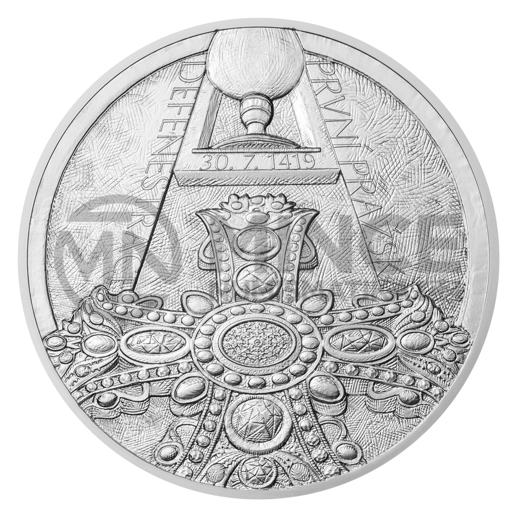 První krev husitských válek byla prolita při první pražské defenestraci. Klíčová událost českých dějin posloužila jako námět pro stříbrnou pamětní medaili České mincovny.