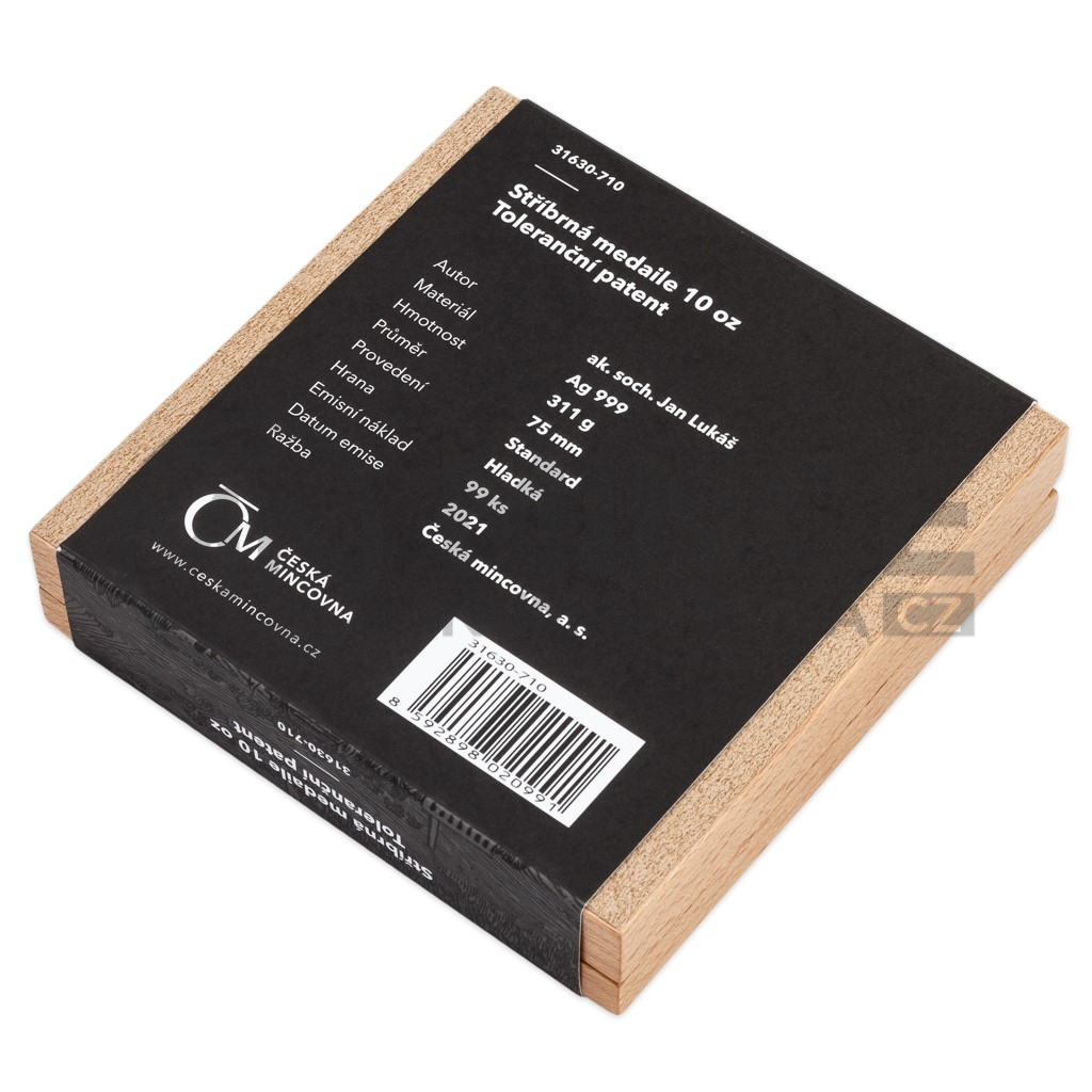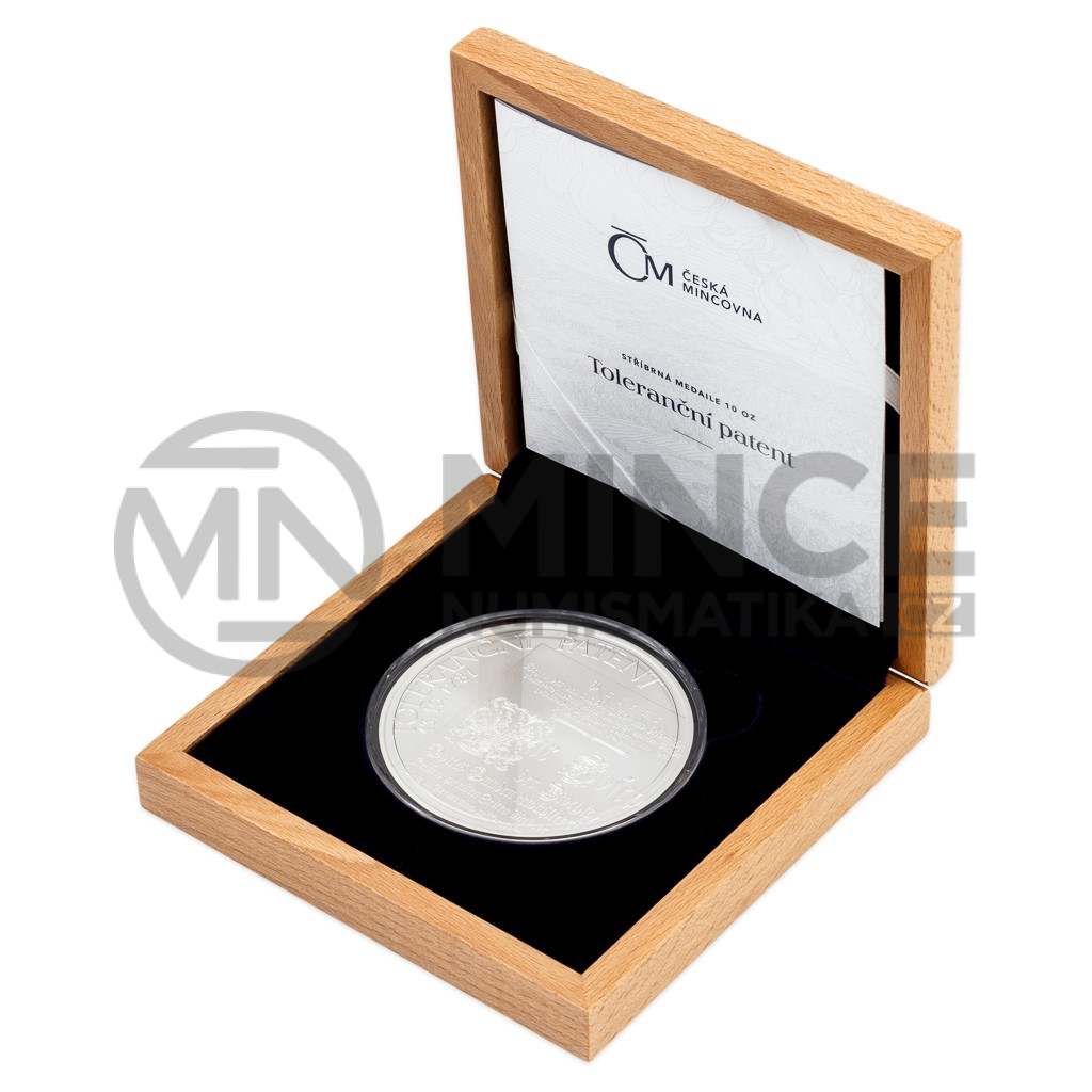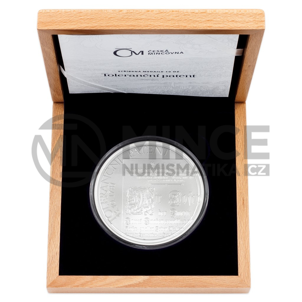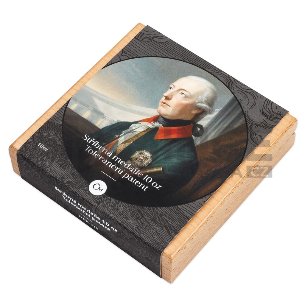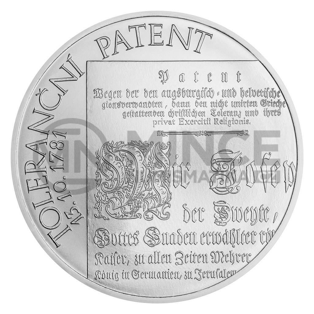 Stříbrná medaile České mincovny o hmotnosti deseti trojských uncí připomíná vydání přelomového dokumentu Josefa II. – takzvaného tolerančního patentu.