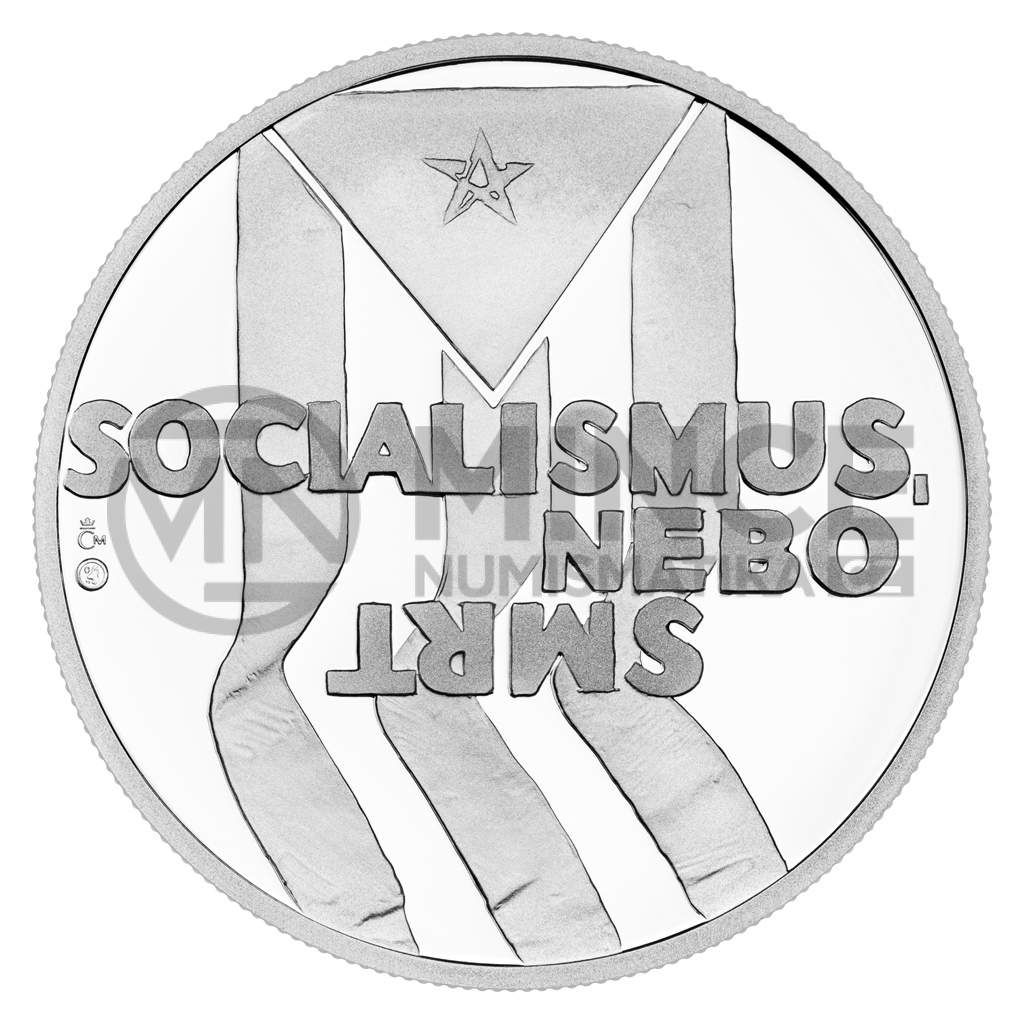 Na deváté stříbrné medaili České mincovny z cyklu s názvem Kult osobnosti se objevuje kontroverzní postava Fidela Castra.